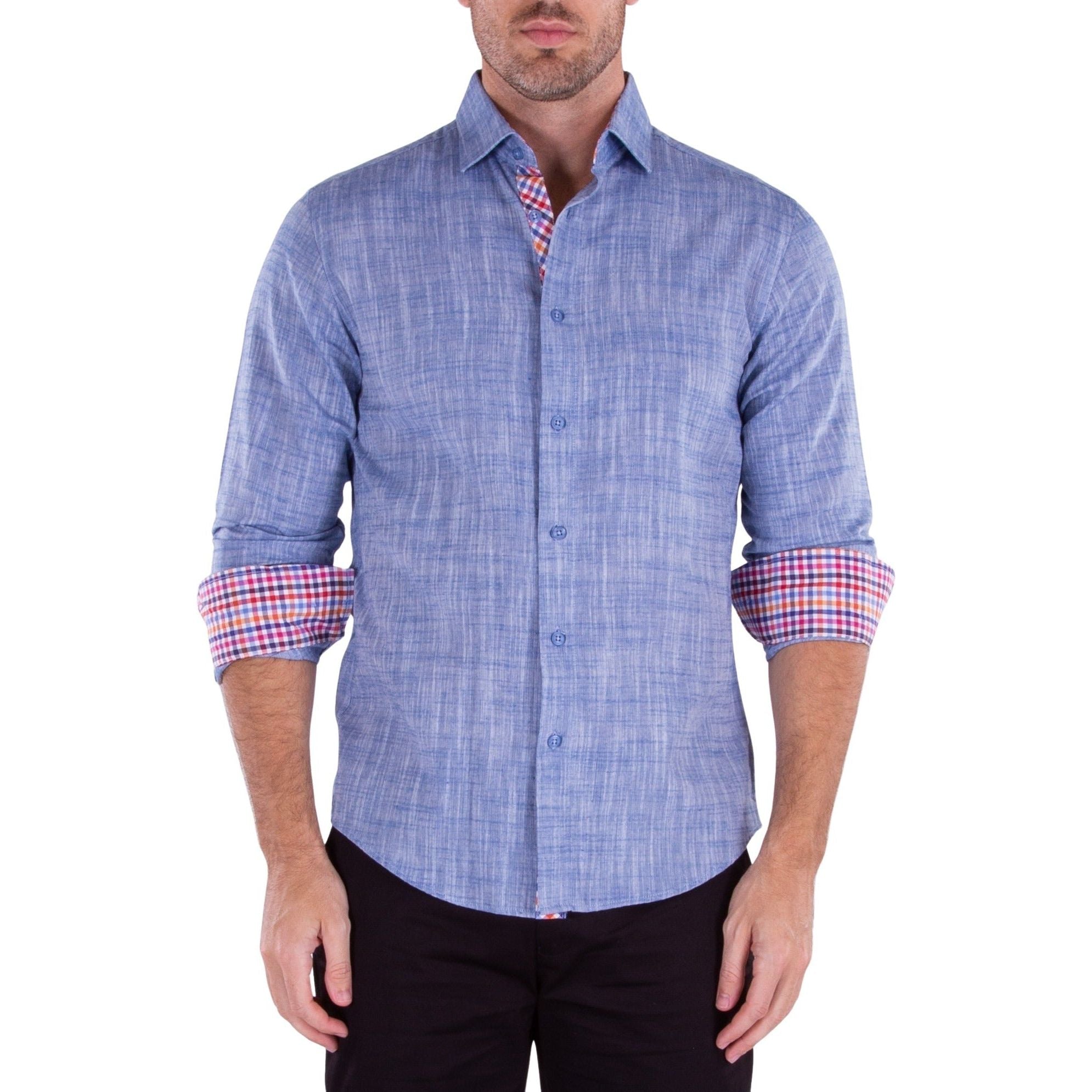 202299 - Men's Blue Button Up Long Sleeve Dress Shirt
