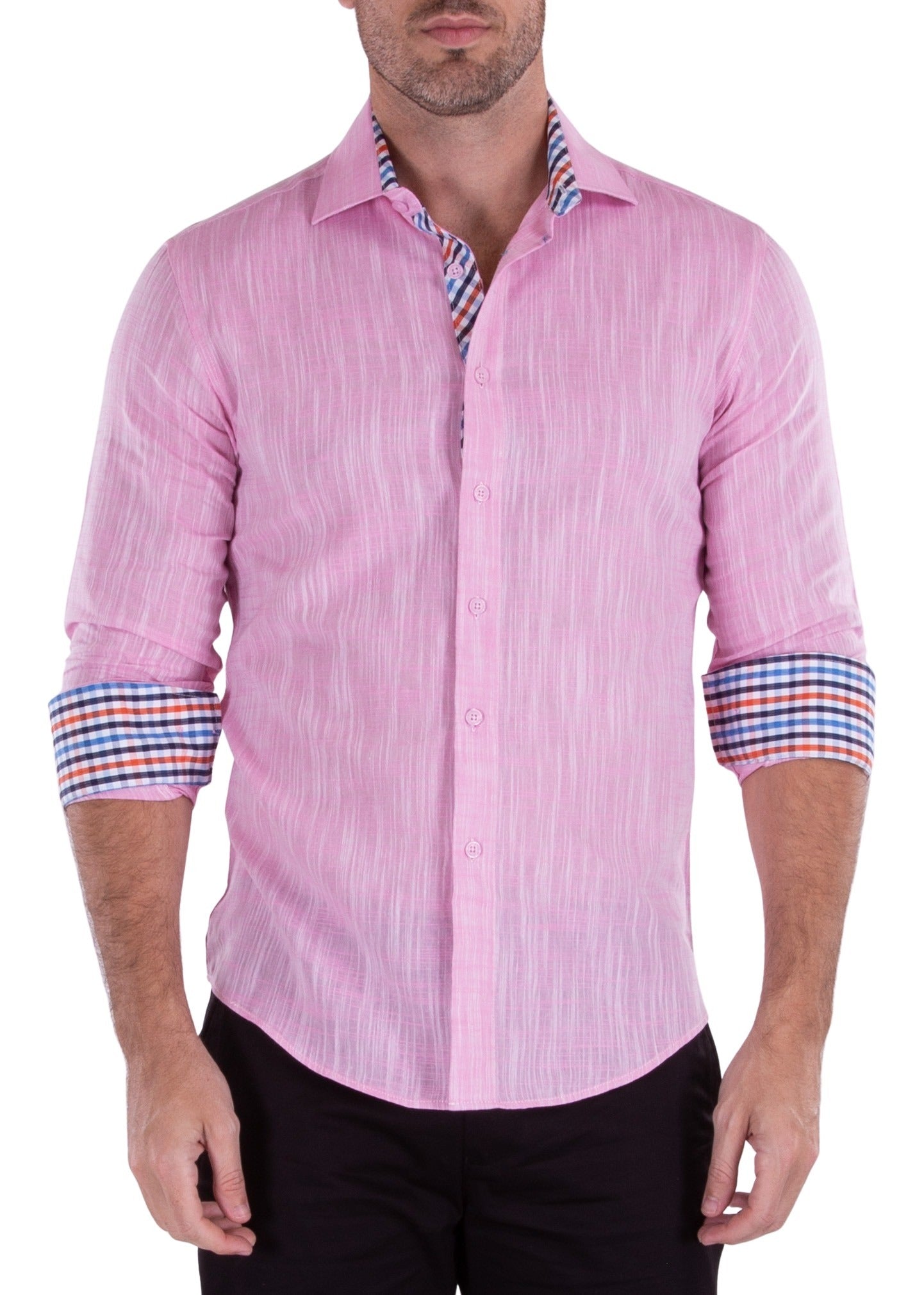 202238 - Men's Pink Button Up Long Sleeve Dress Shirt