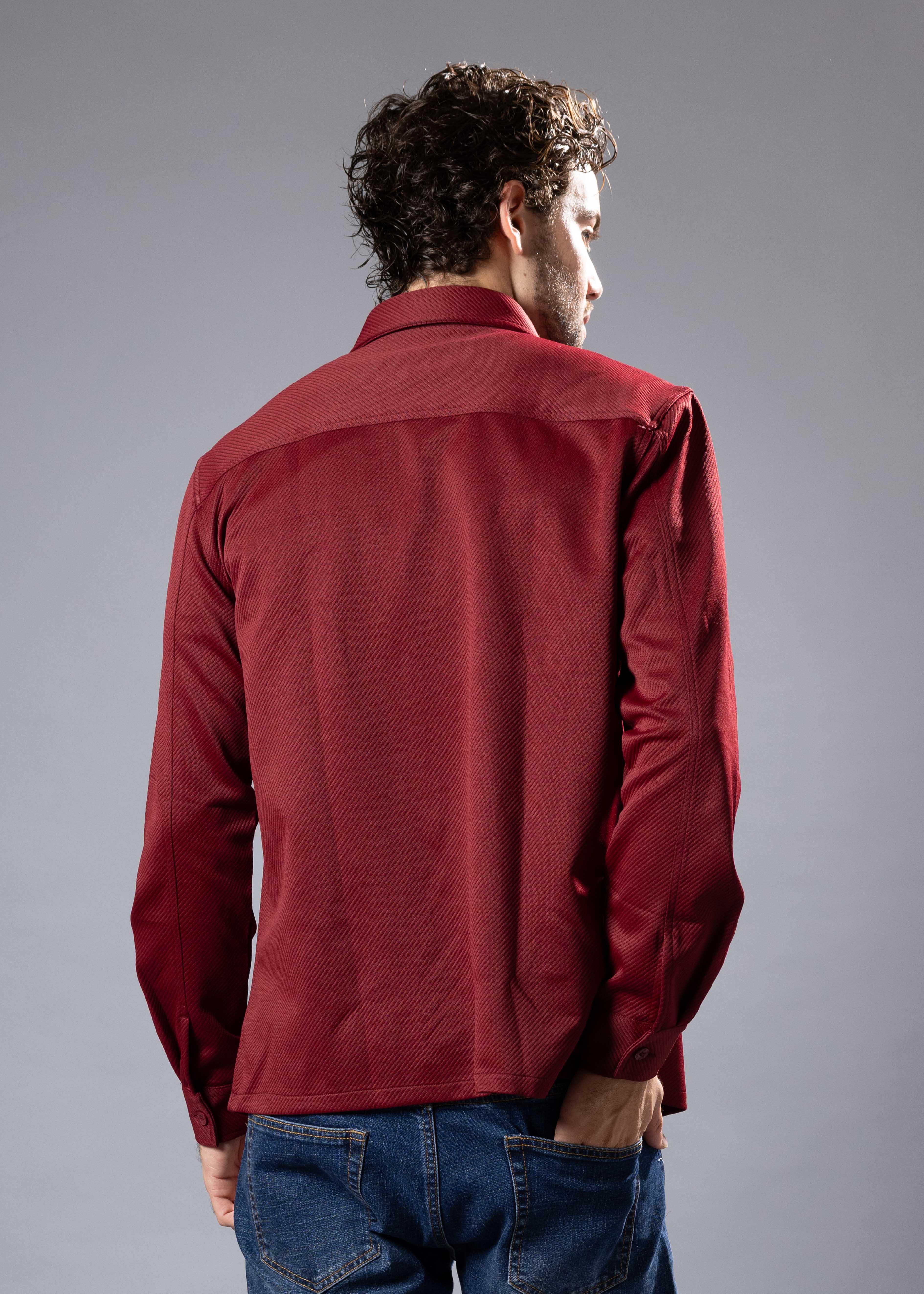 254101 - Burgundy Textured Twill Overshirt Jacket