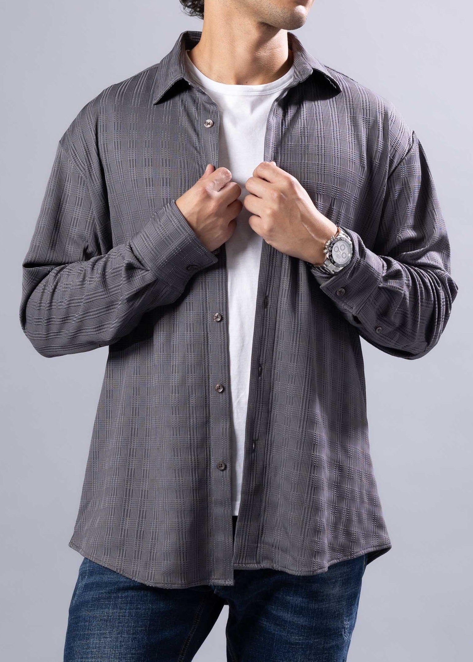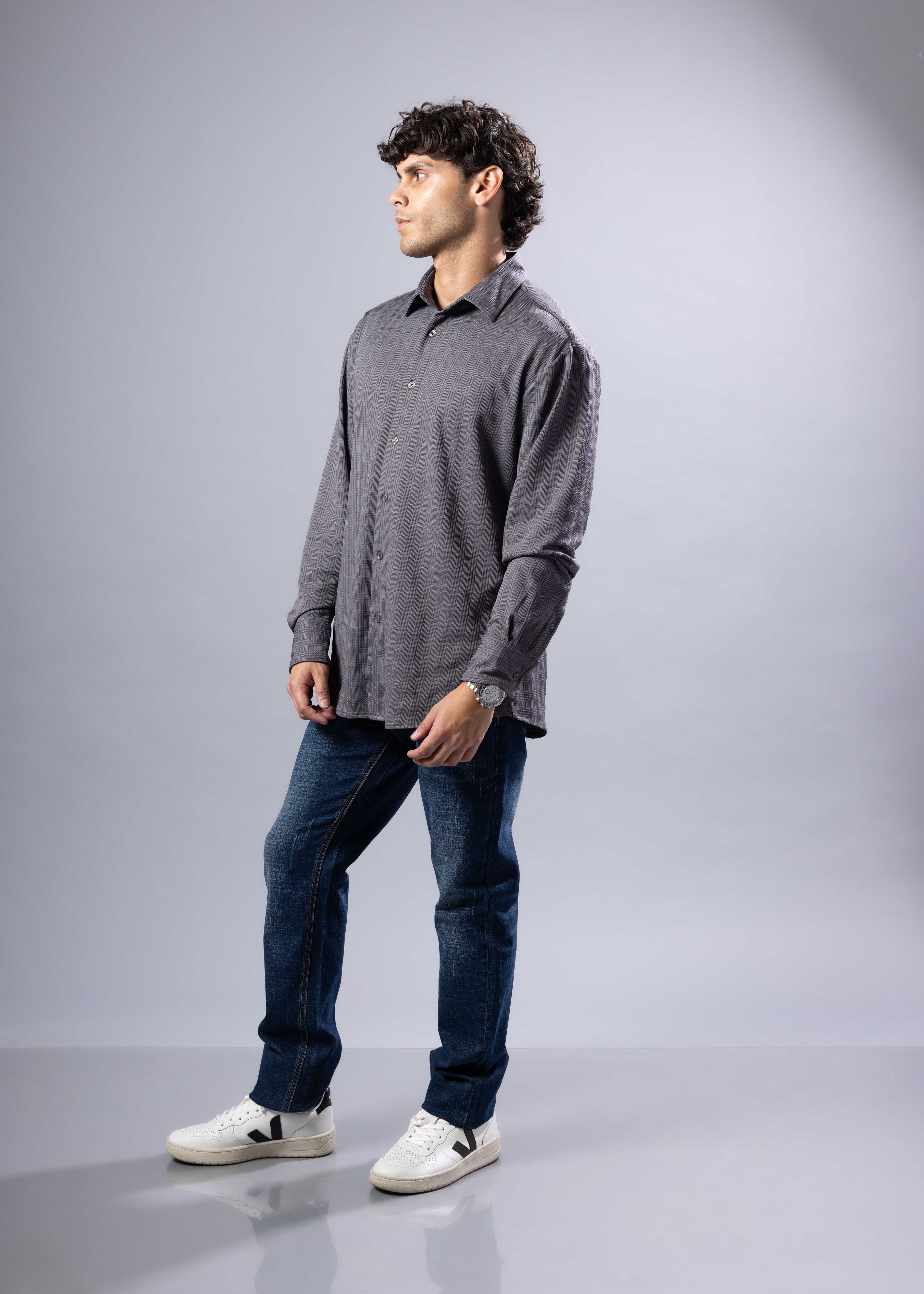252216 - Charcoal Button Up Long Sleeve Dress Shirt