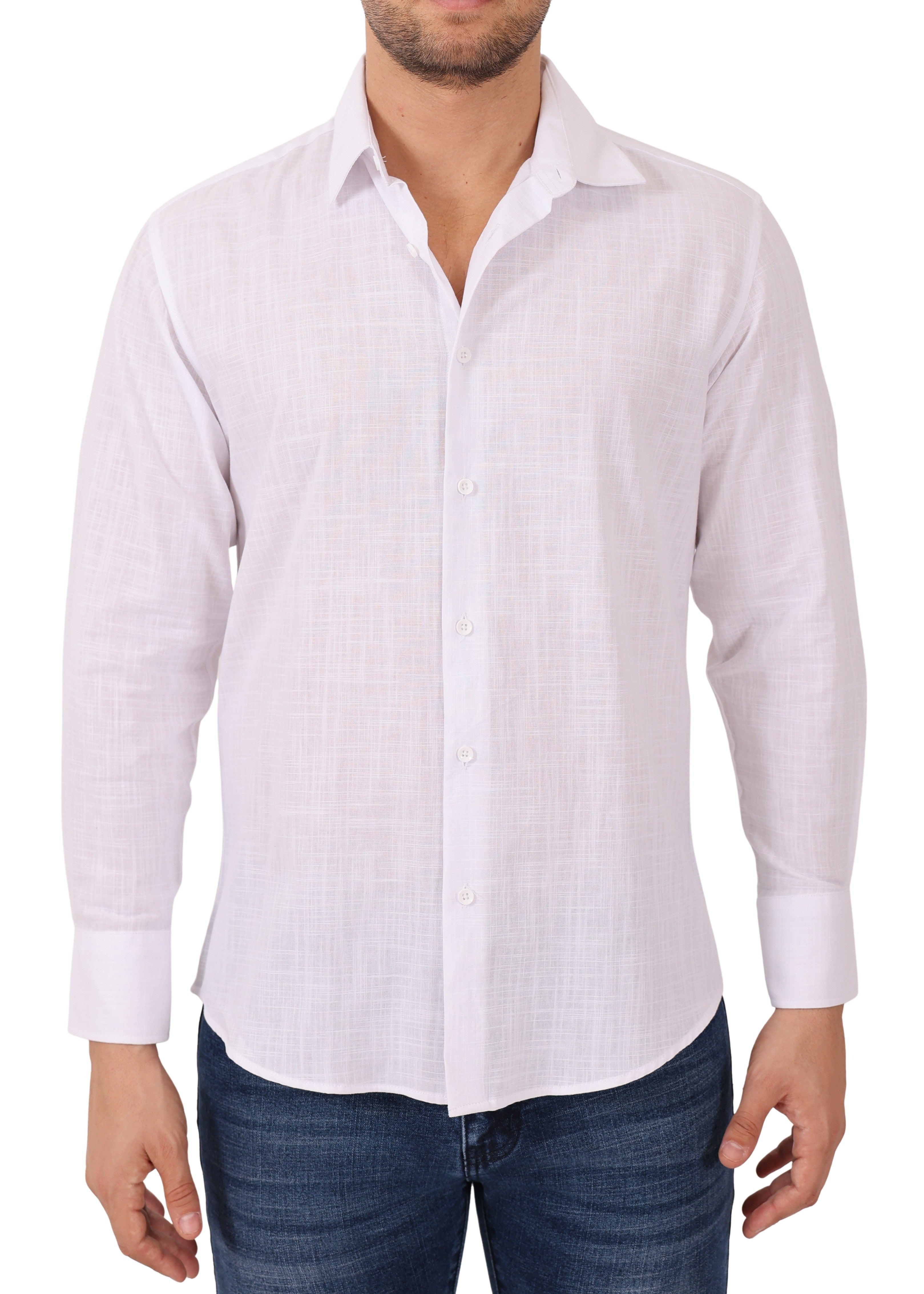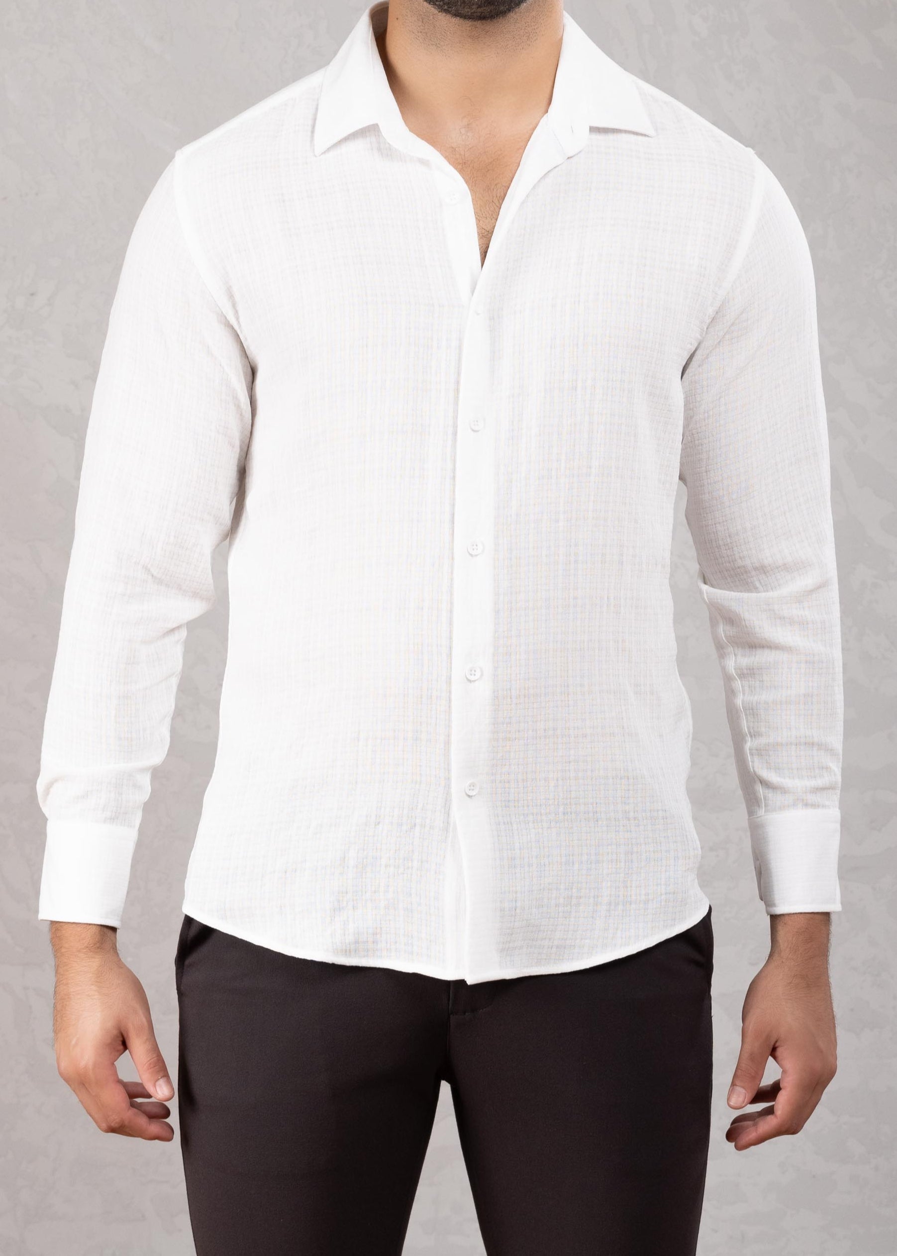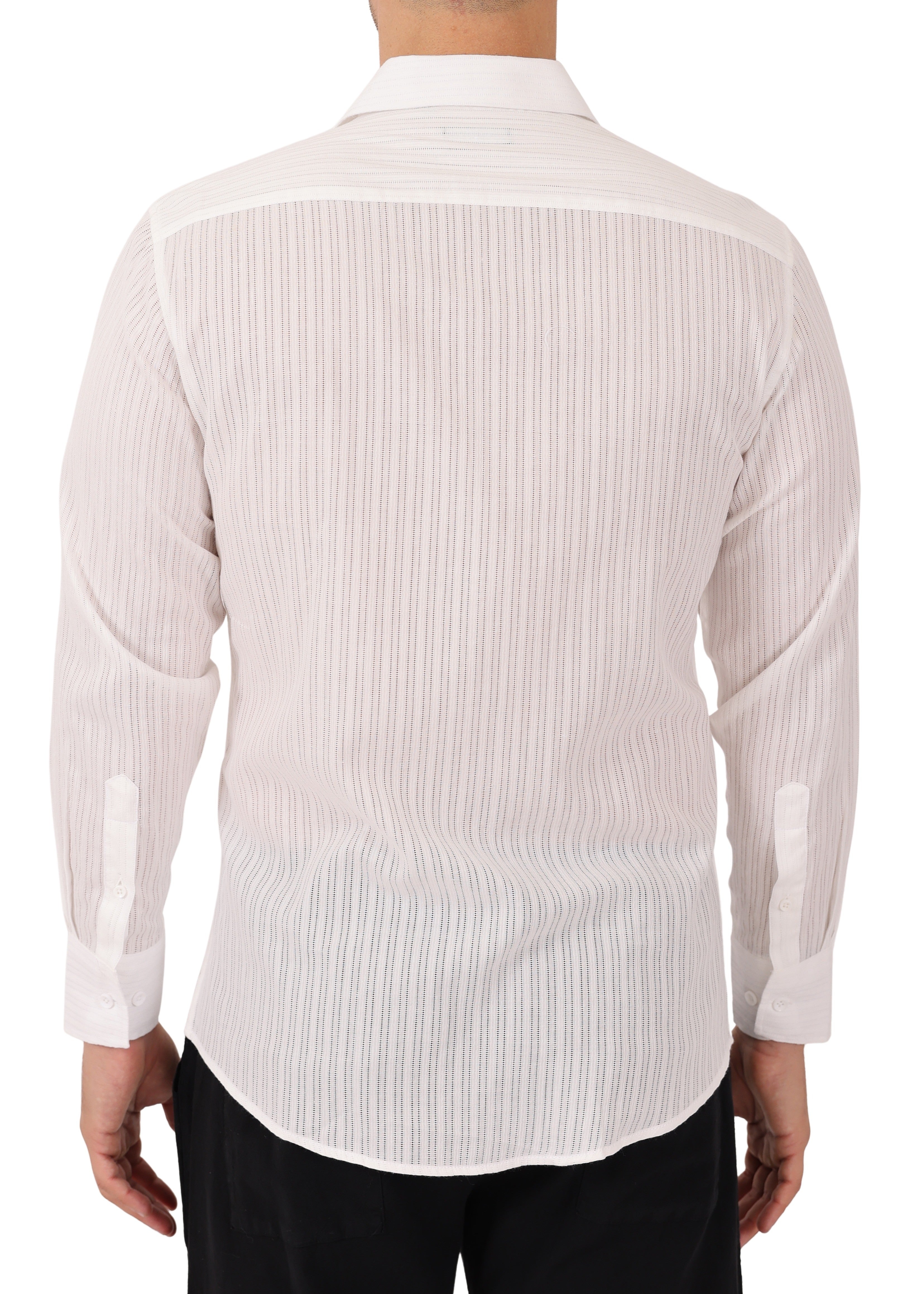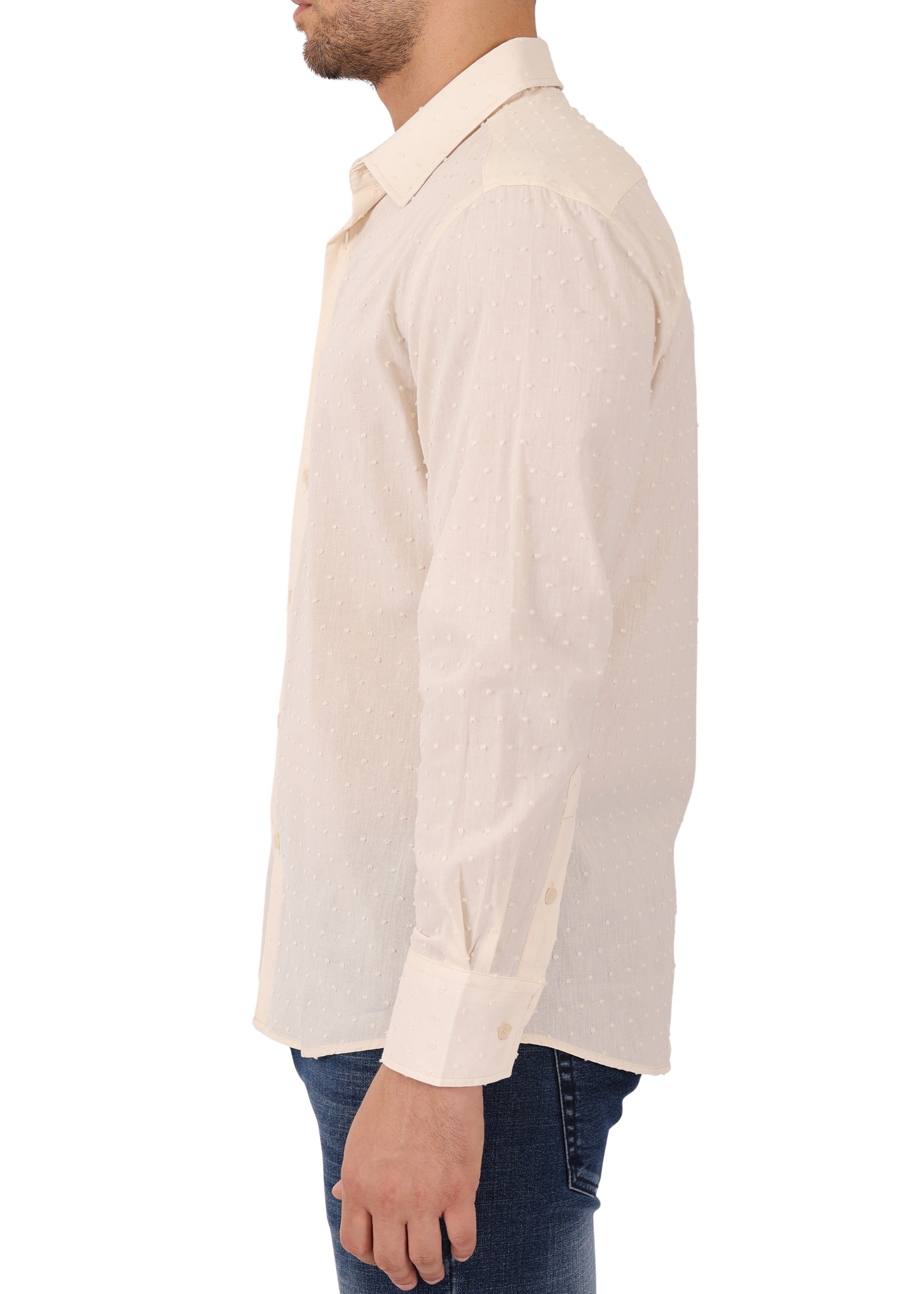 252202 - Cream Button Up Long Sleeve Dress Shirt