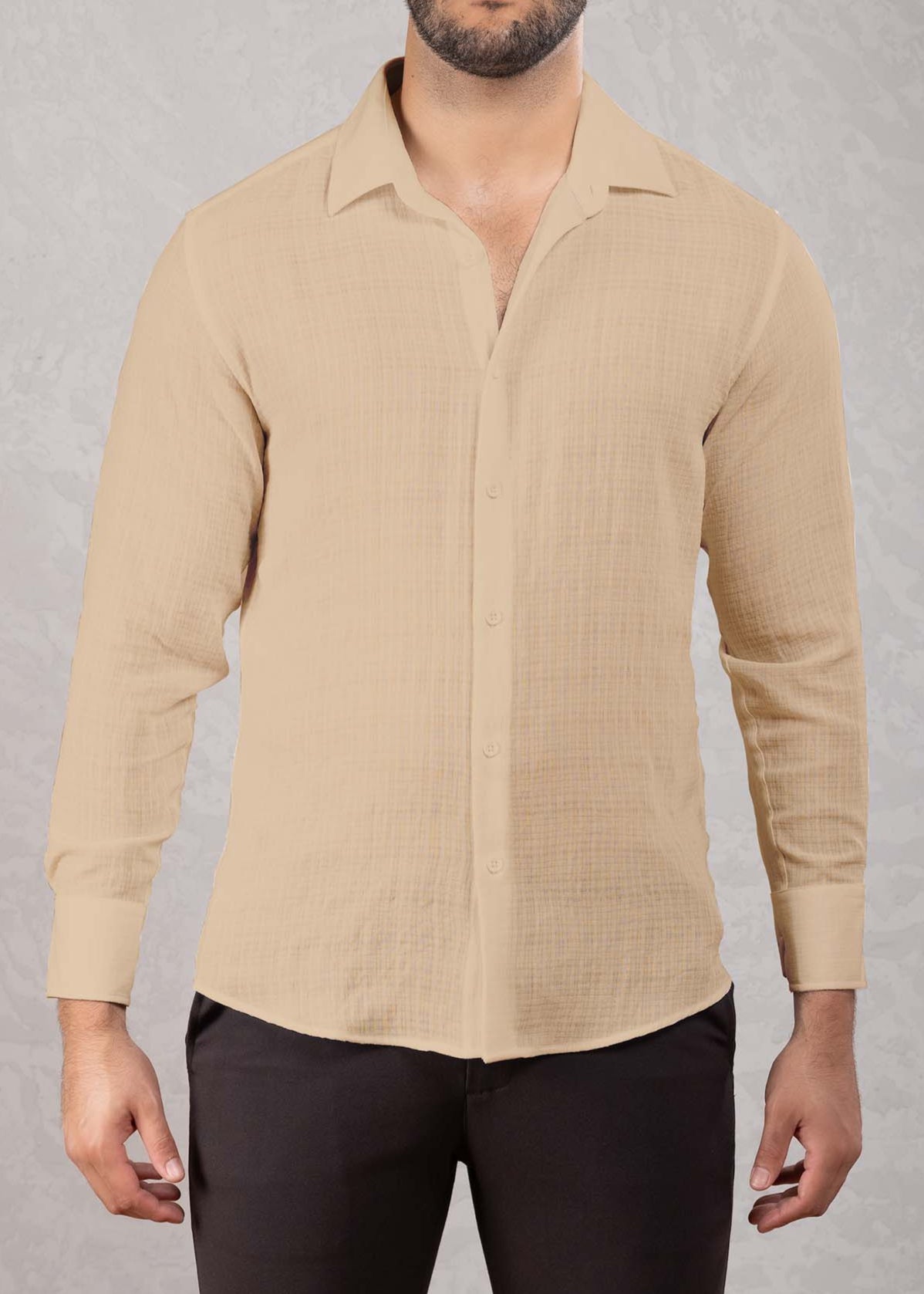 242223 - Beige Button Up Long Sleeve Dress Shirt