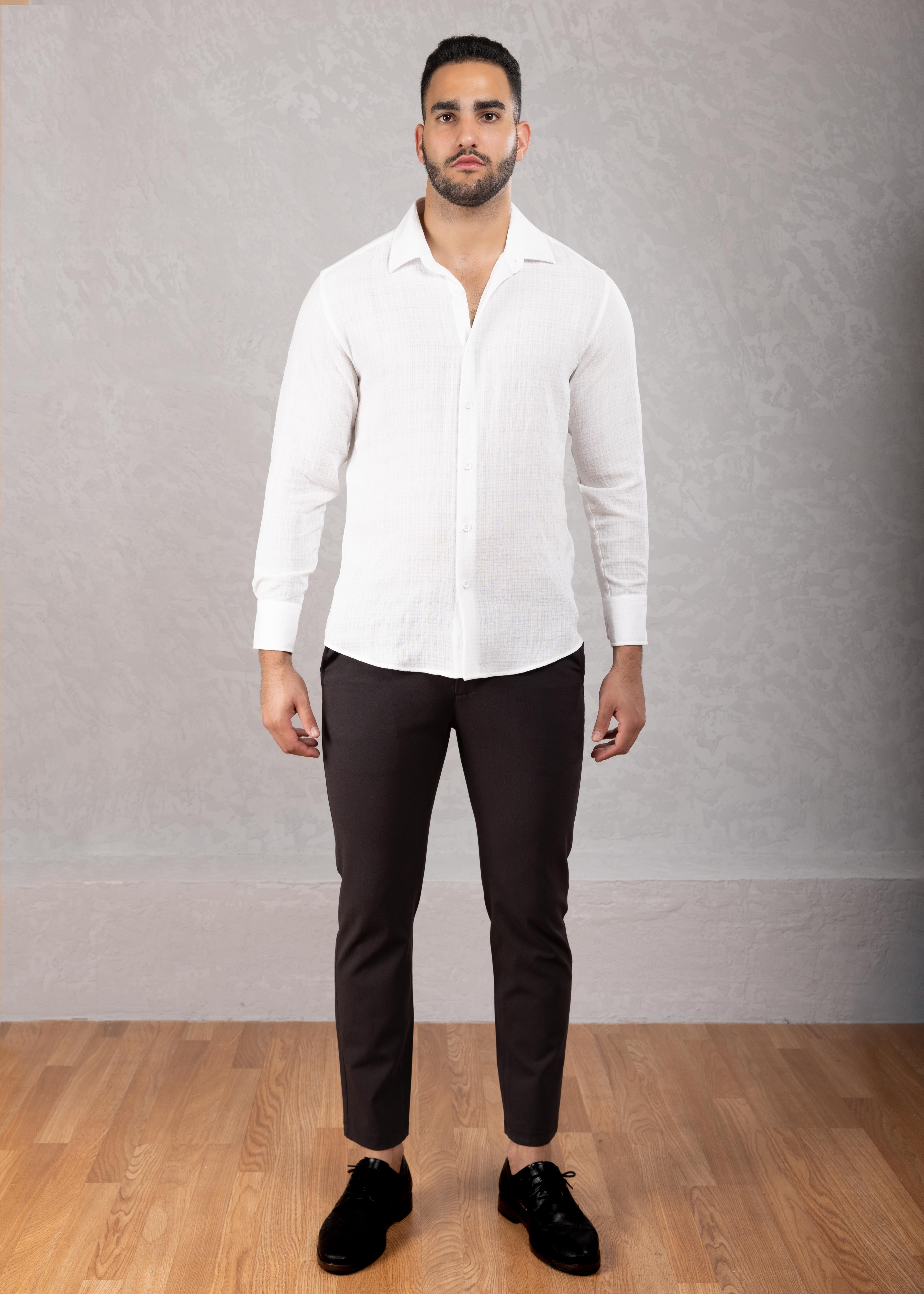 252201 - Brown Button Up Long Sleeve Dress Shirt