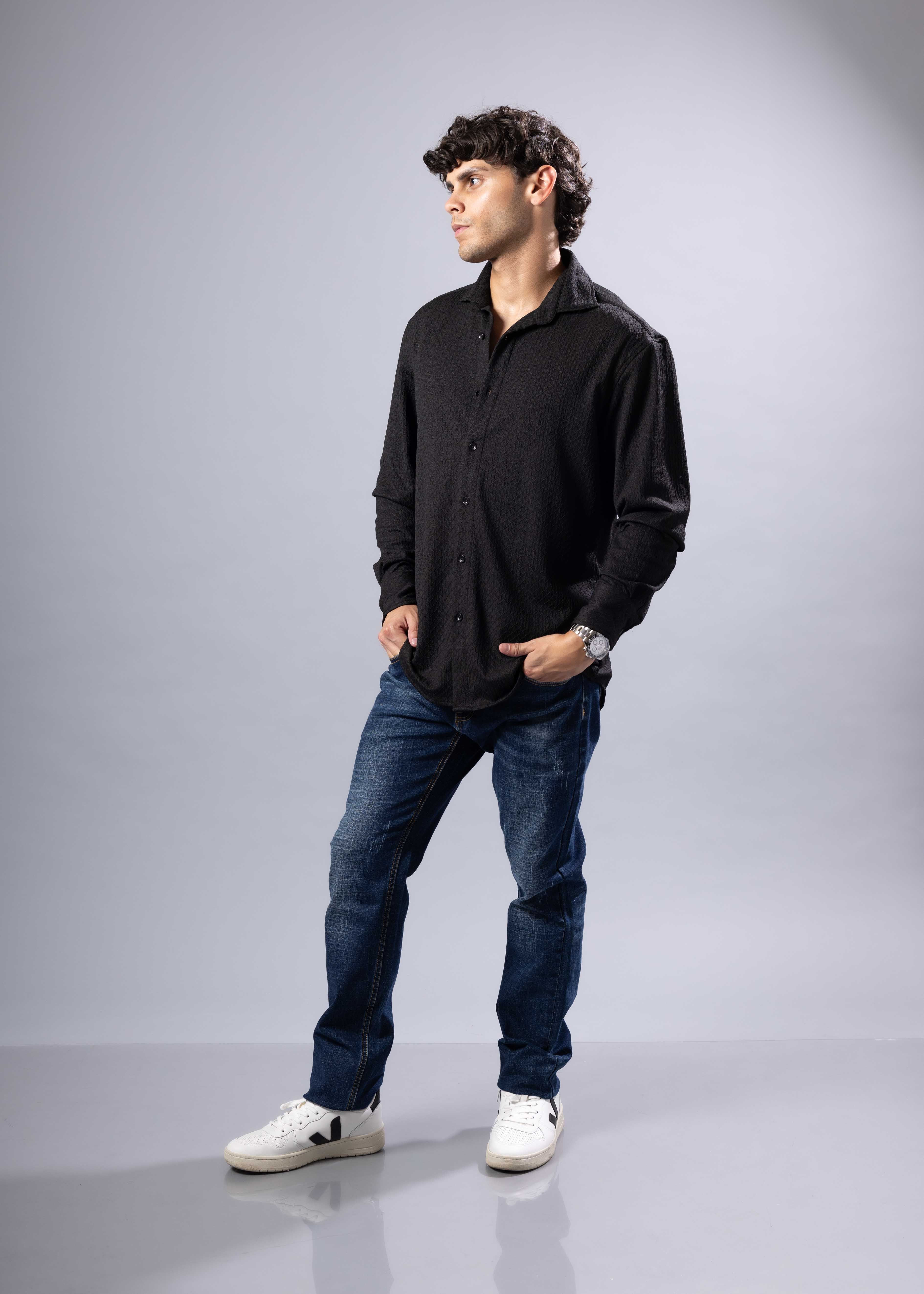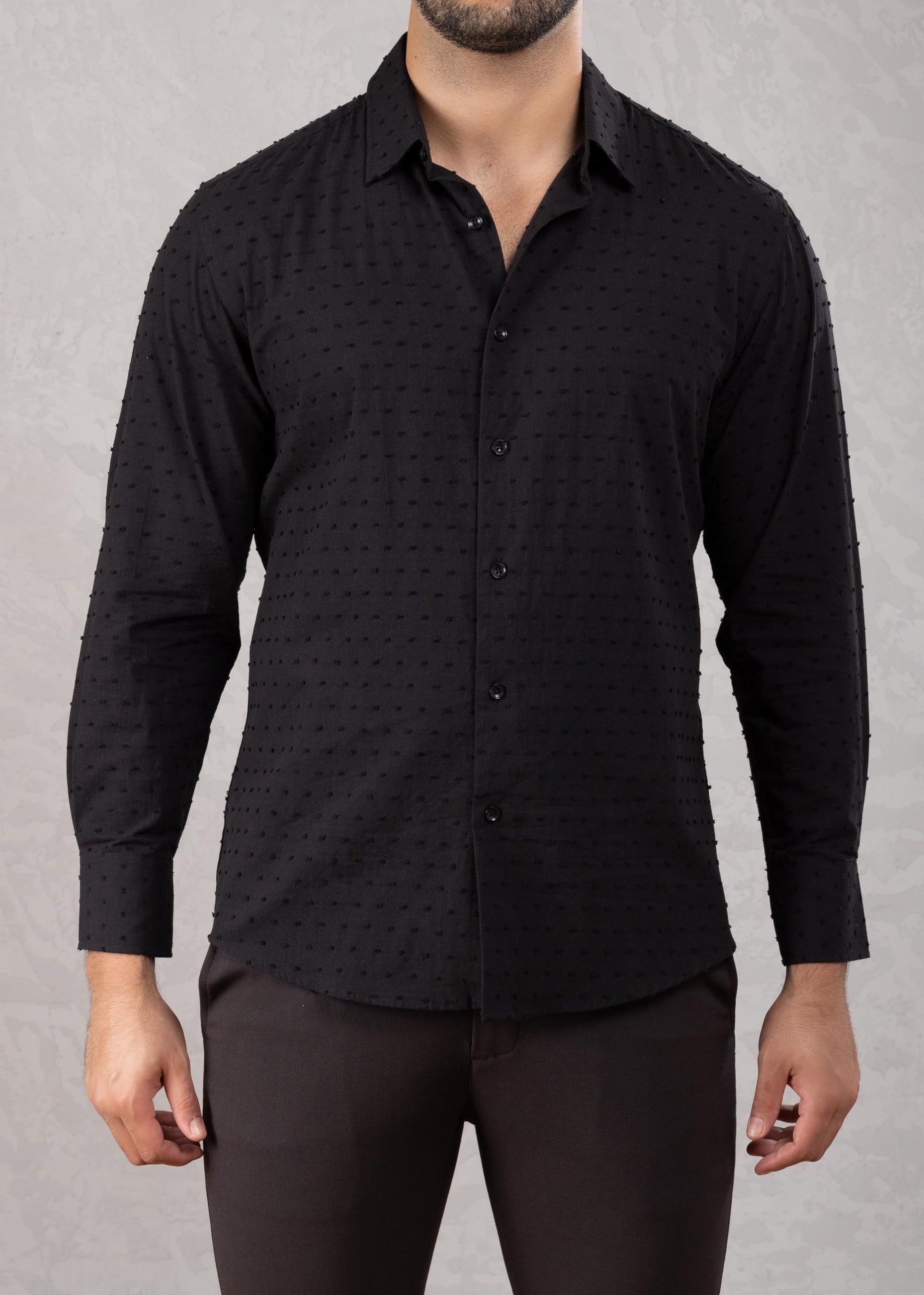 242225 - Black Button Up Long Sleeve Dress Shirt