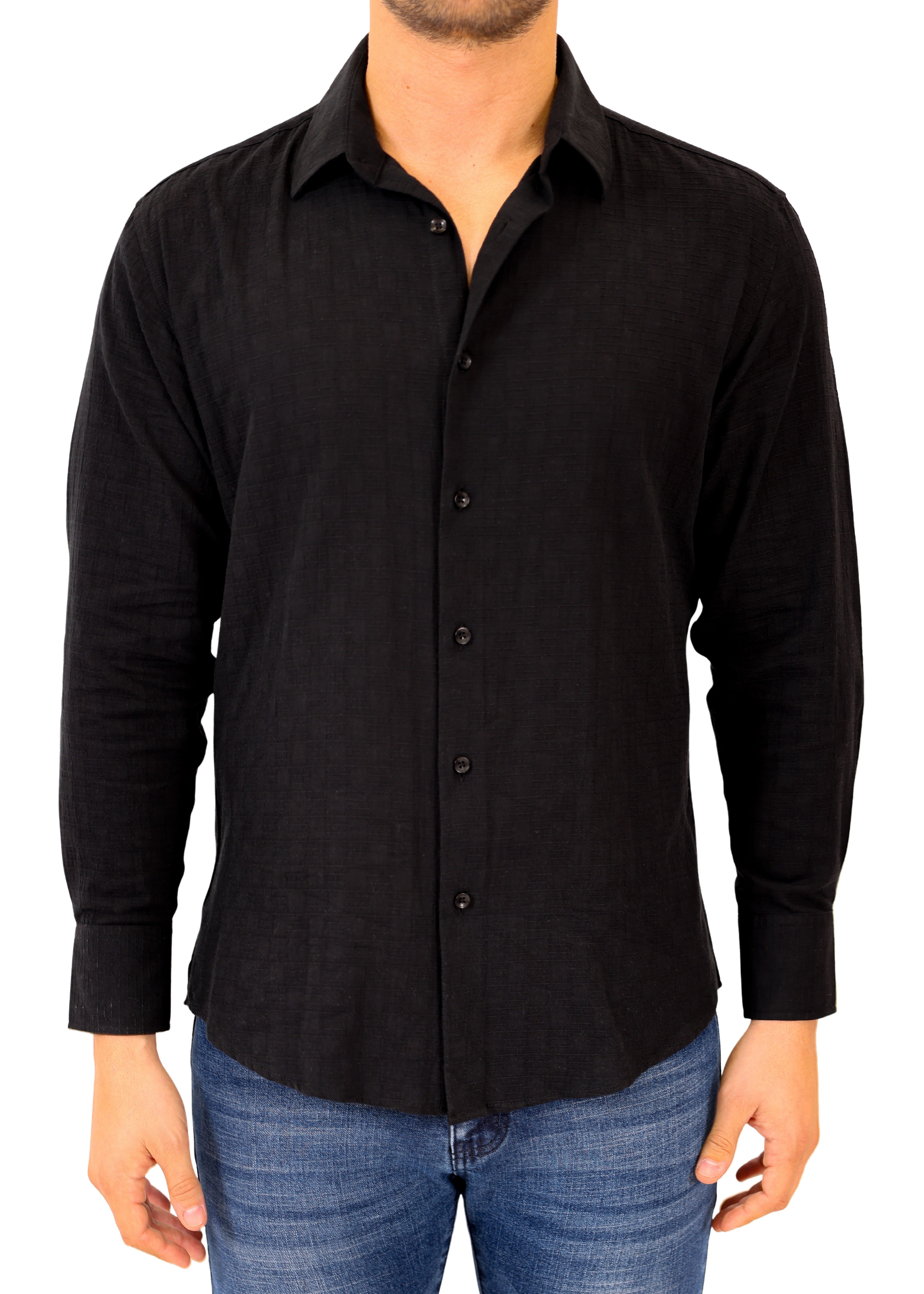 242219 - Black Button Up Long Sleeve Dress Shirt