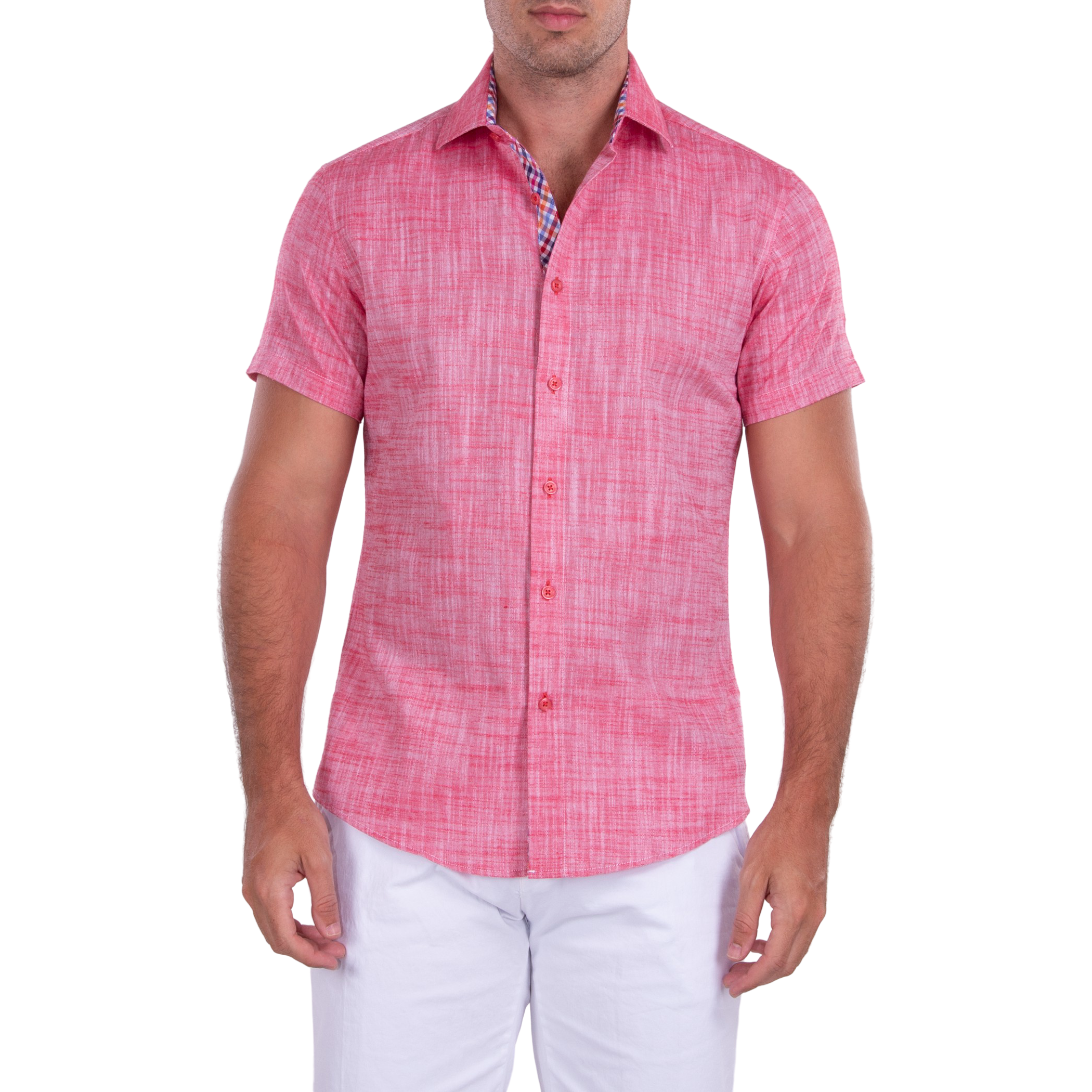 202120 - Men's Red Button Up Short Sleeve Dress Shirt