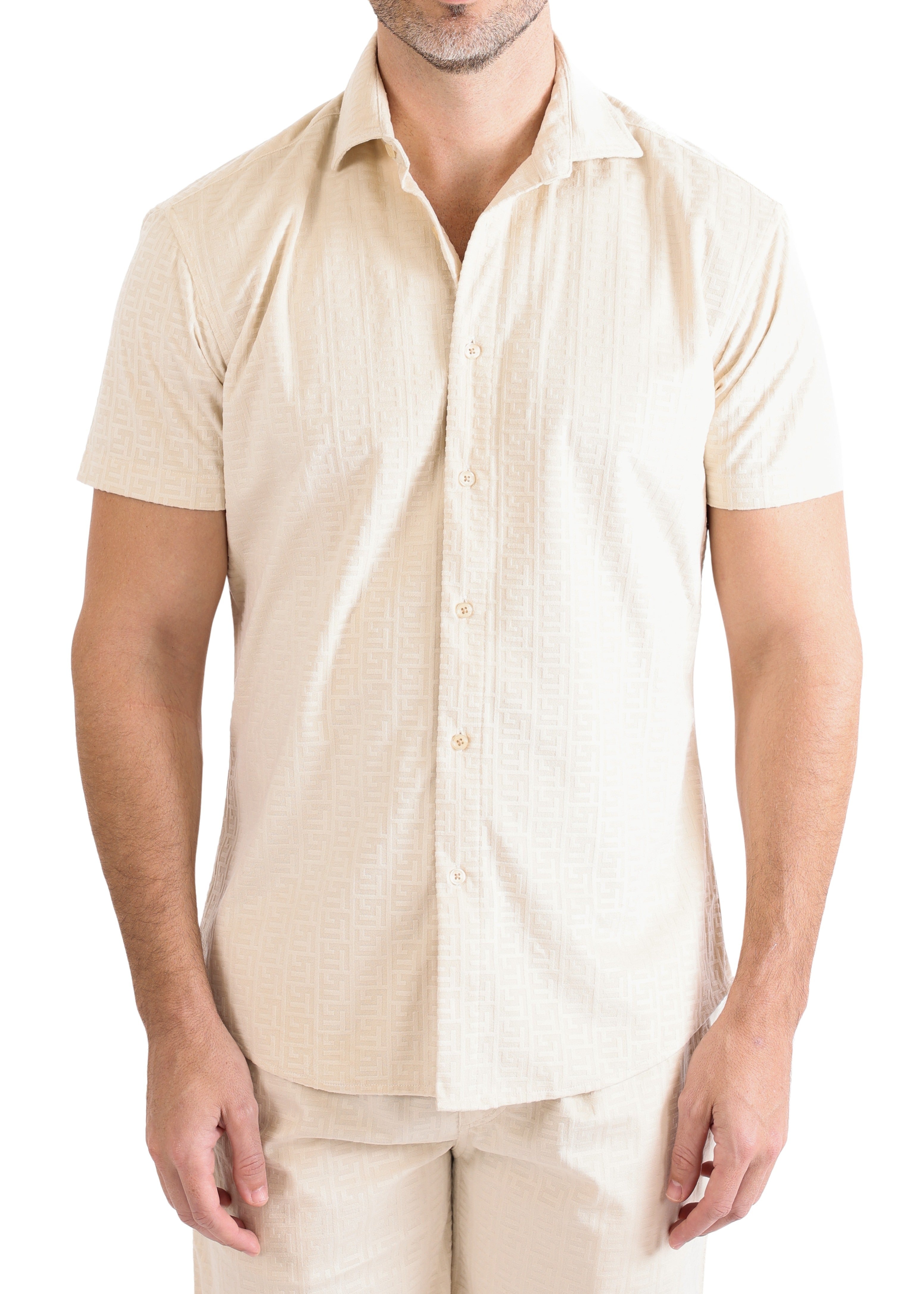 242101 - Beige Greek Pattern Short Sleeve Shirt
