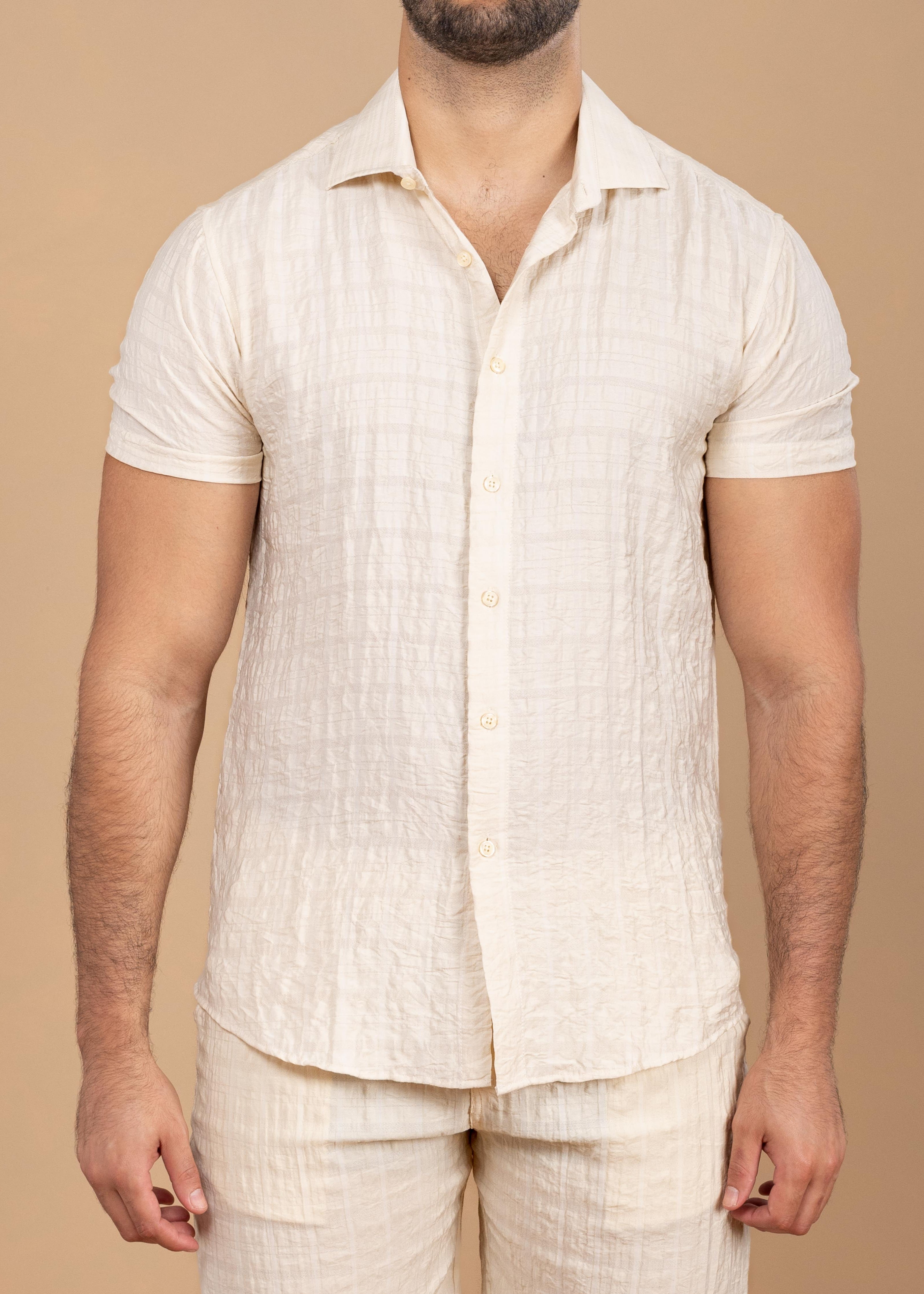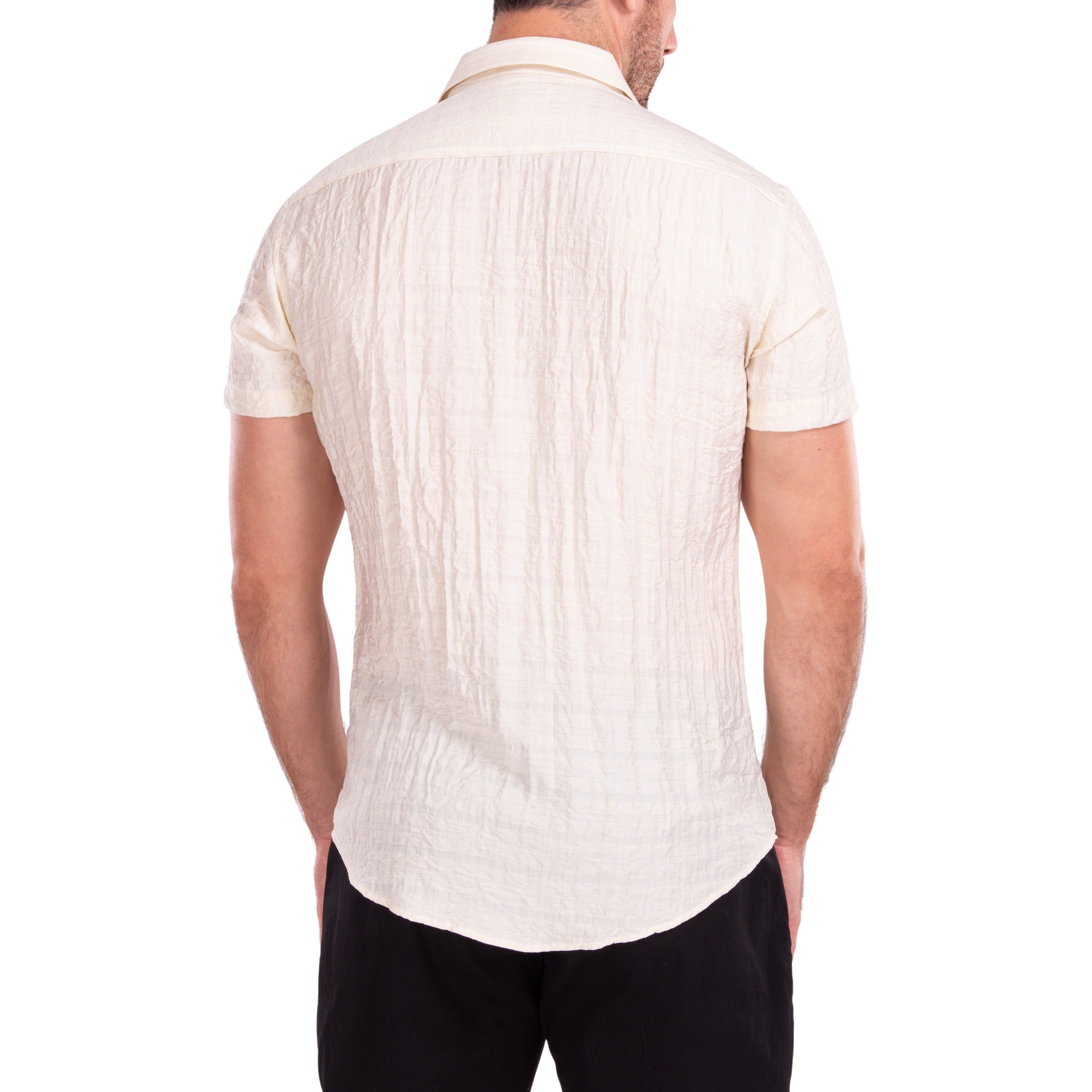 202173 - Beige Button Up Short Sleeve Dress Shirt
