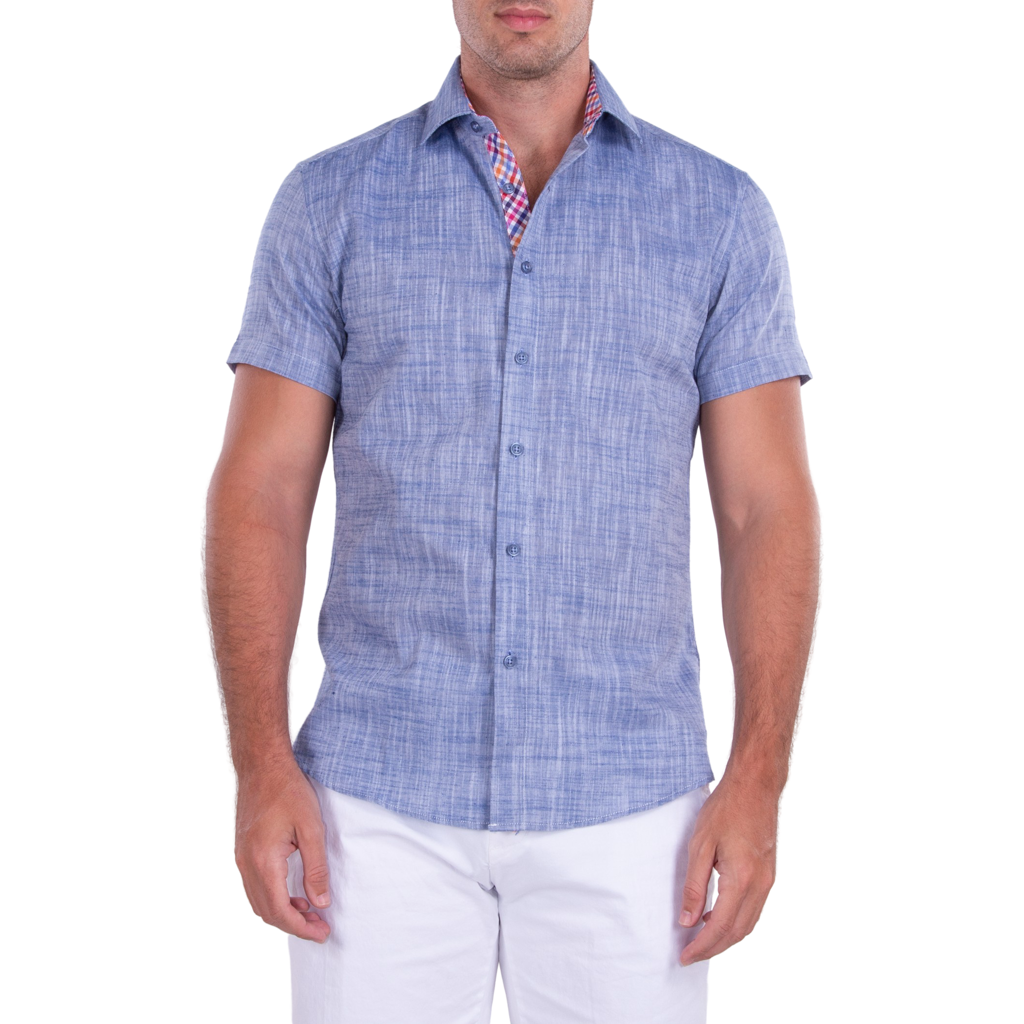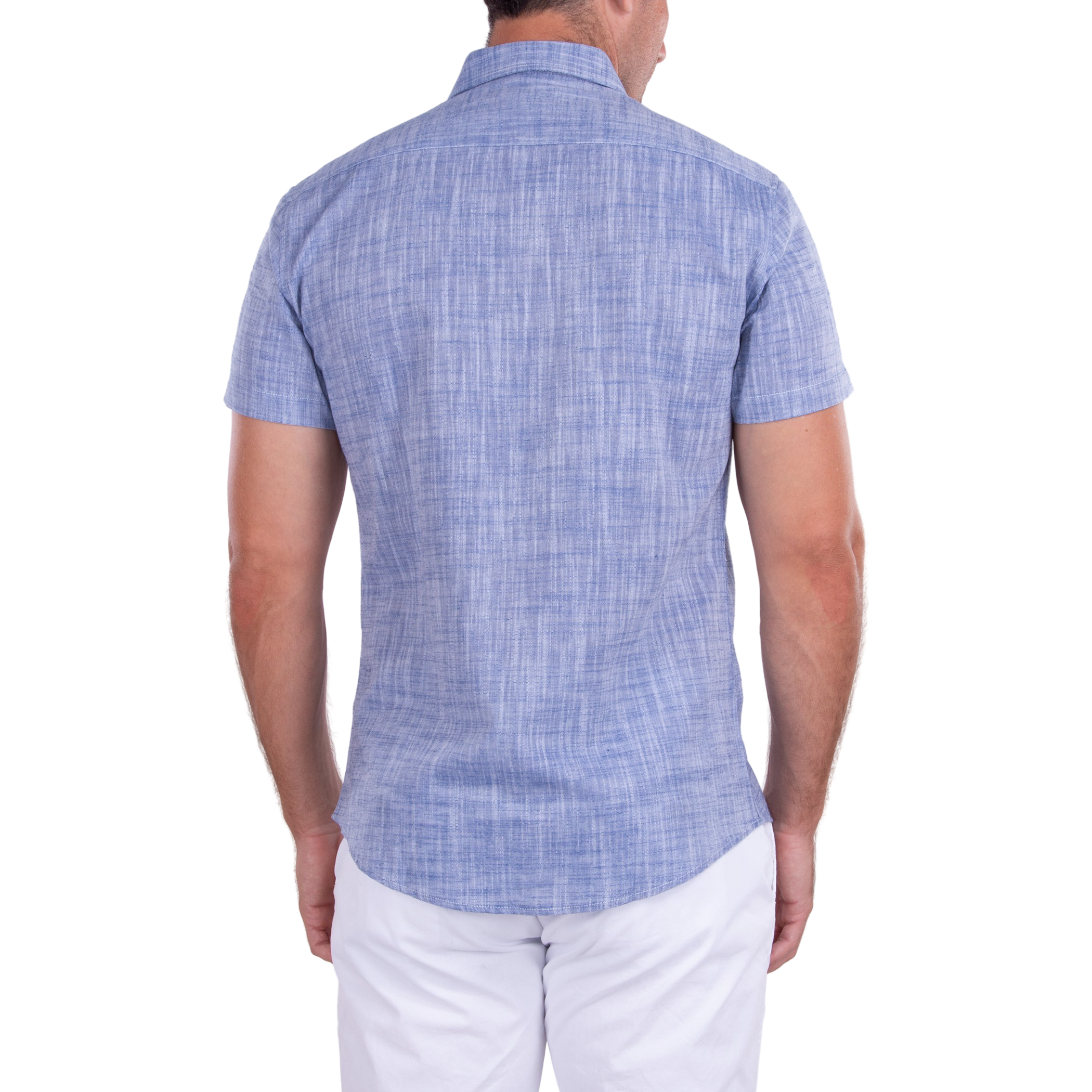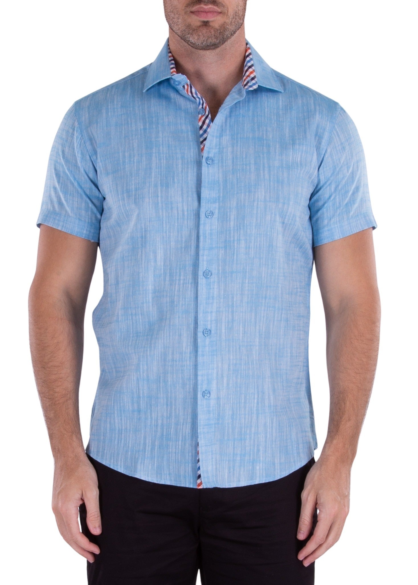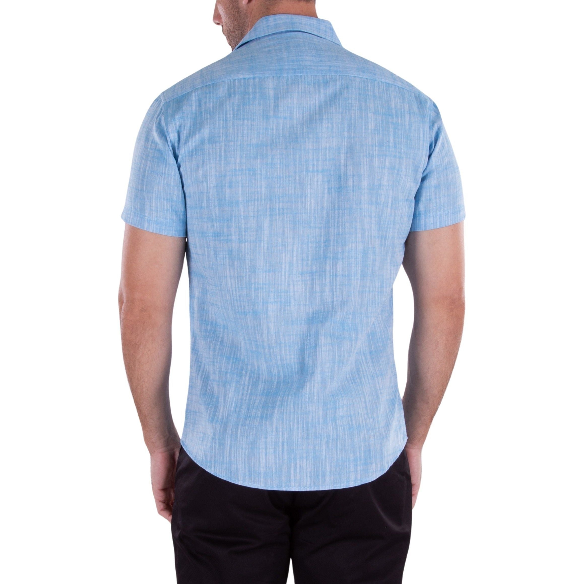 202120 - Men's Blue Button Up Short Sleeve Dress Shirt