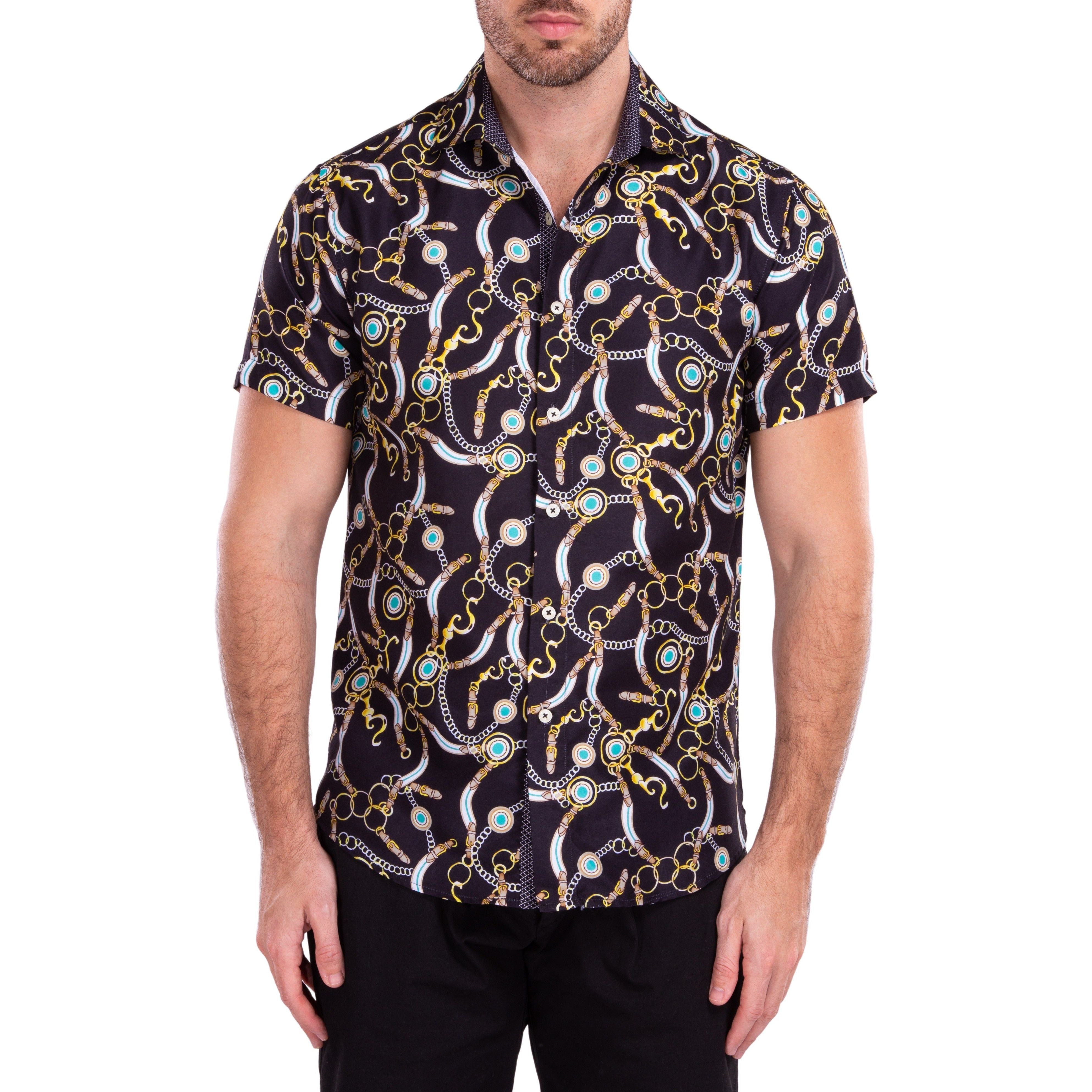 202173 - Black Button Up Short Sleeve Dress Shirt
