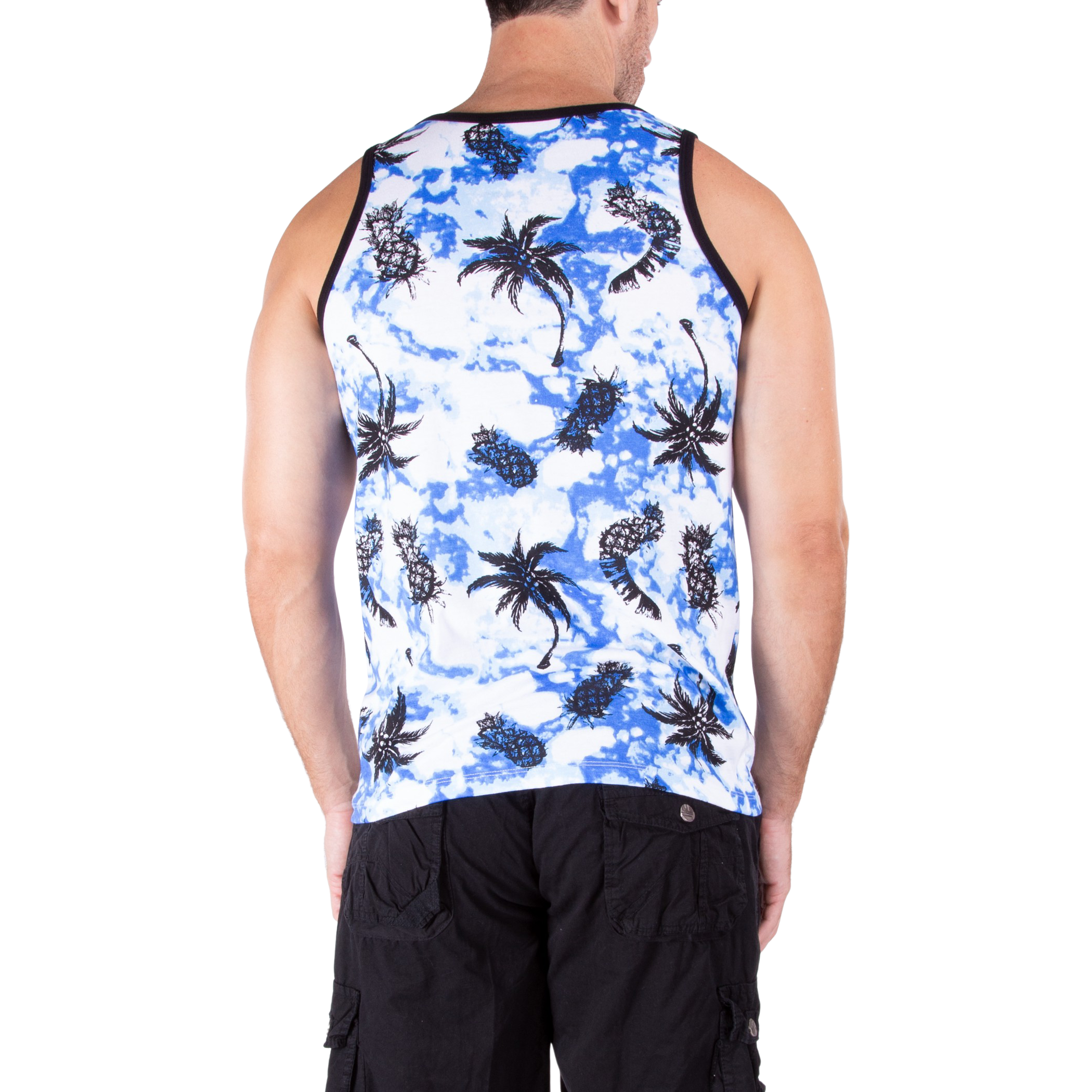 201811 - Men's Tie-Dye Blue Printed Cotton Tank Top