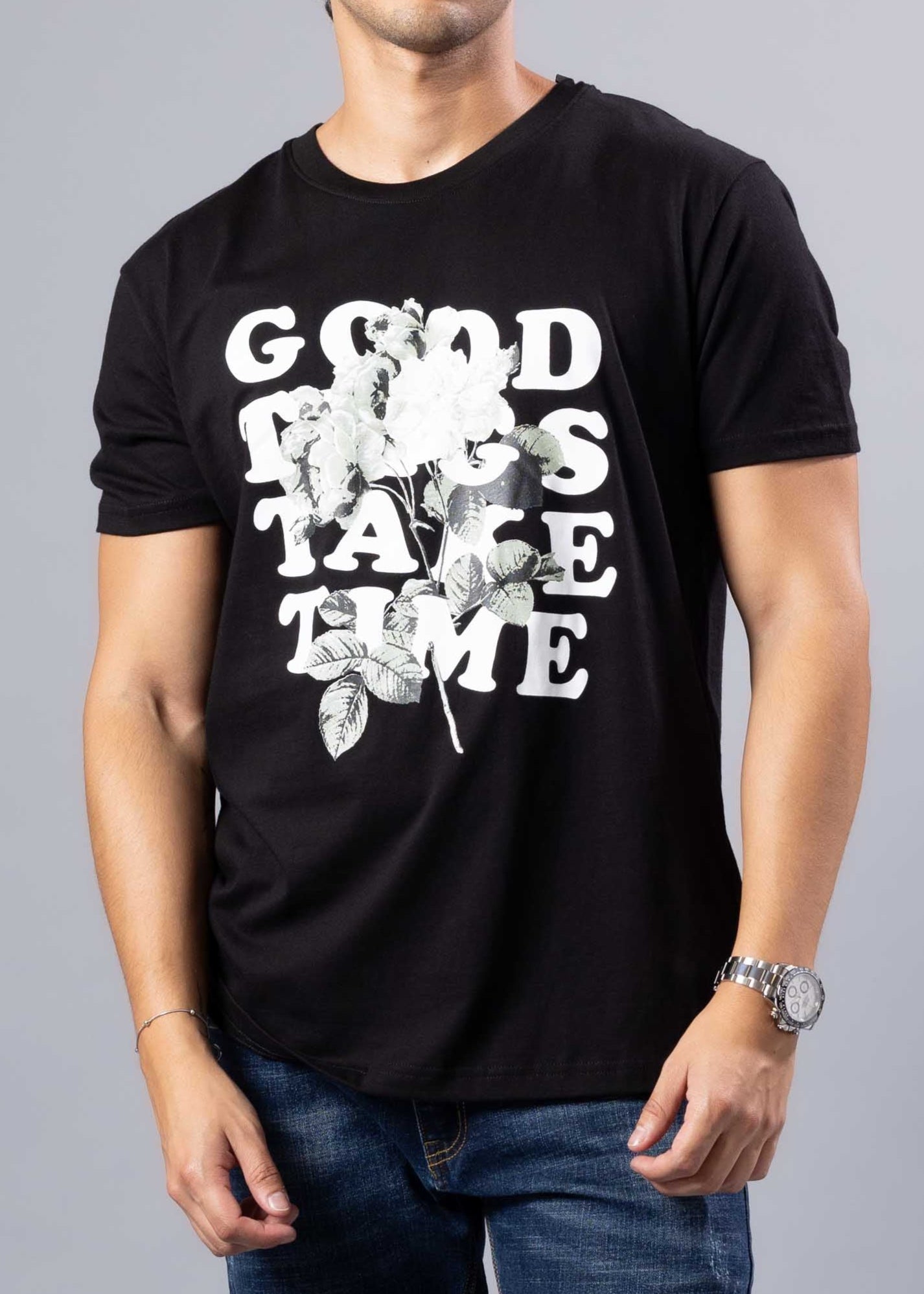 241107 - Black GOOD THINGS TAKE TIME T-Shirt