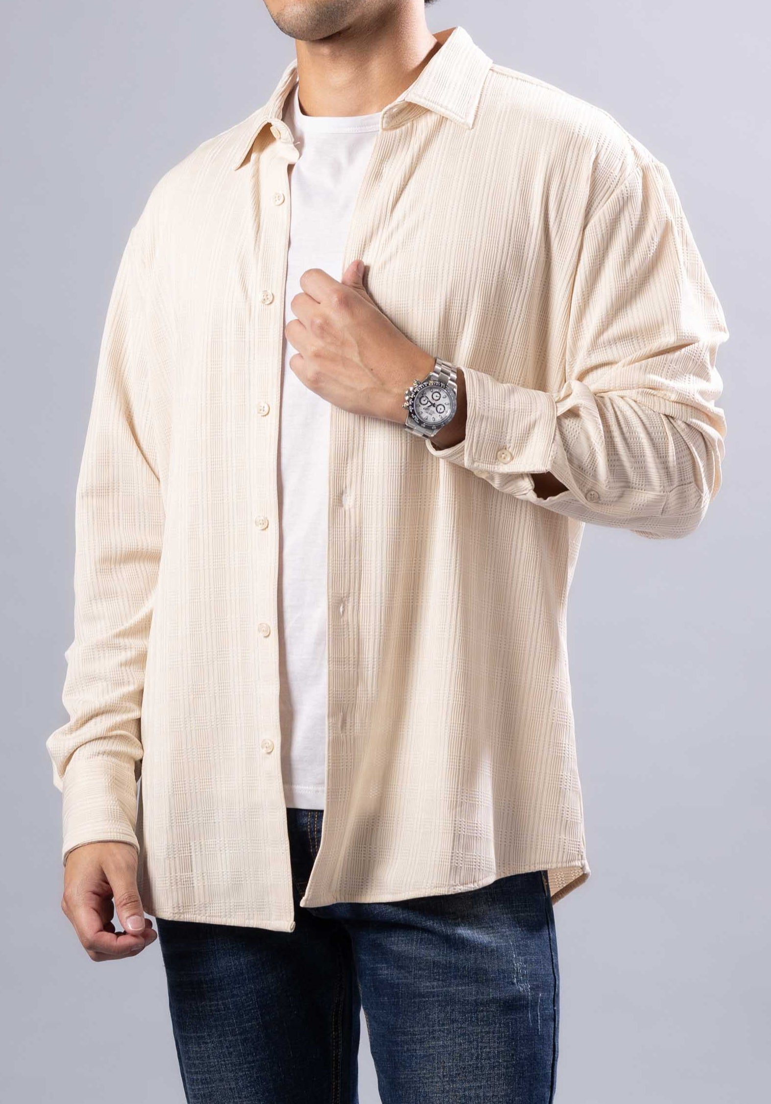 252216 - Beige Button Up Long Sleeve Dress Shirt