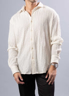 252218 - Off-White Button Up Long Sleeve Dress Shirt