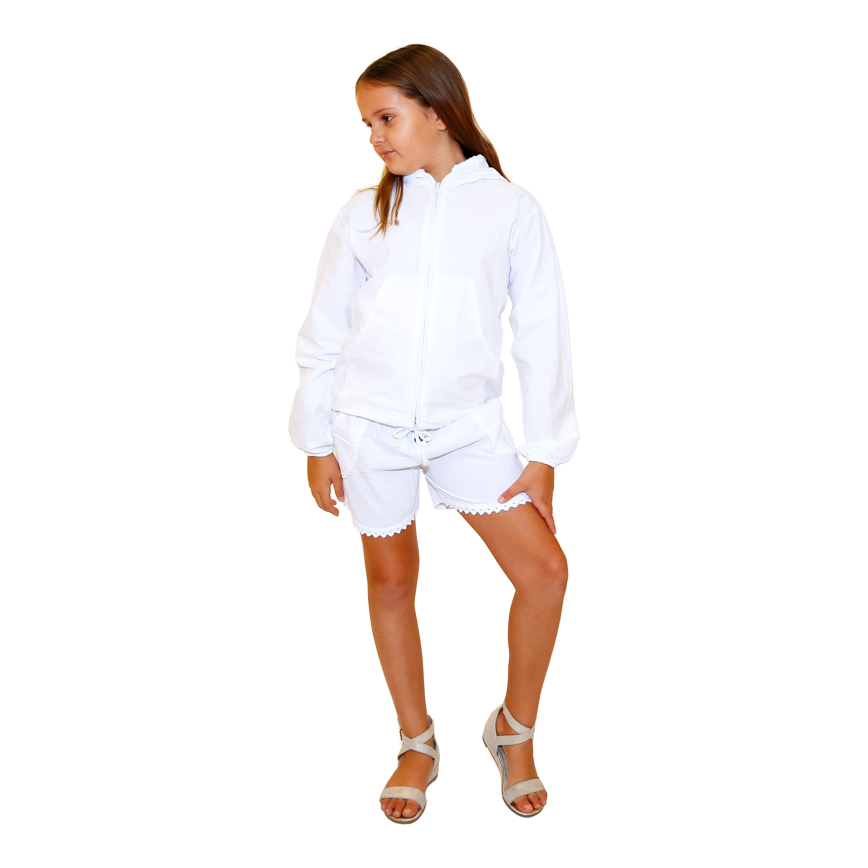 BN1005 - Girls White Cotton Long Sleeve Hoodie