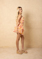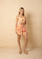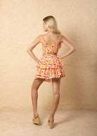 NW1514 - Orange Abstract Print Cotton Tiered Skirt