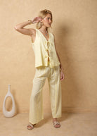NW2067 - Light Yellow Tie-Front Vest Cotton Top