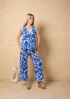 NW2067 - Azulino Petals Print Tie-Front Vest Cotton Top
