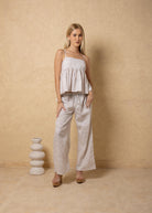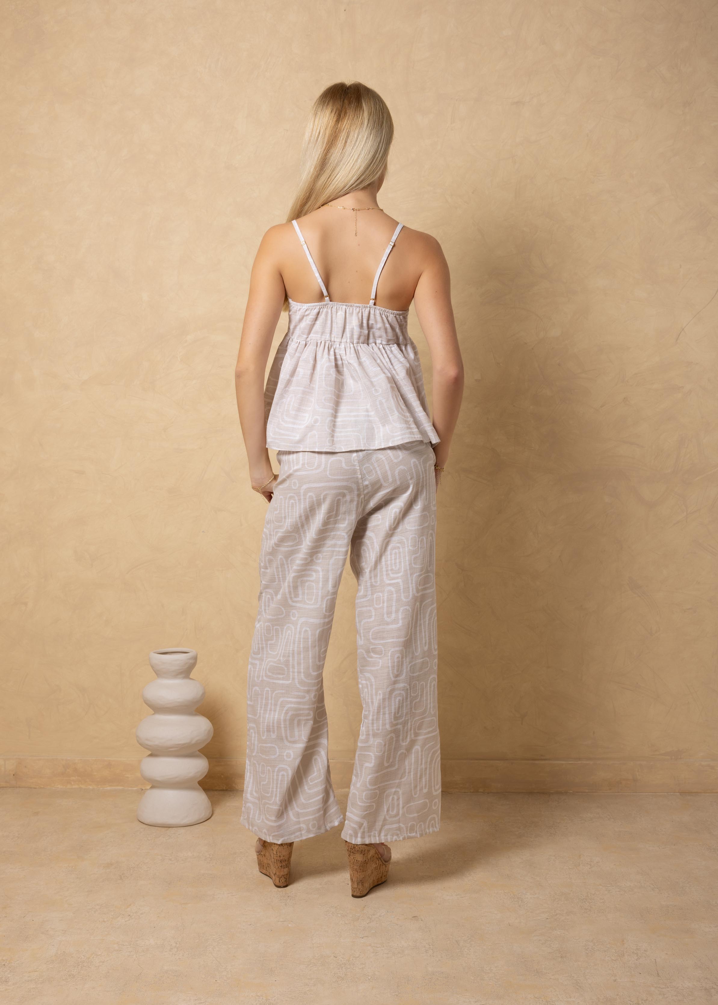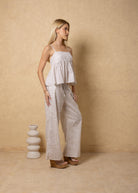 NW1971 - Light Beige Lines Print Cotton Pants