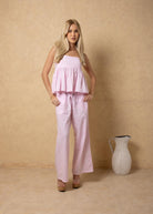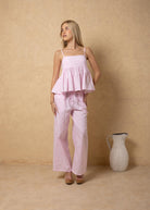 NW1971 - Pastel Pink Lines Print Cotton Pants