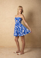 NW1978 - Azulino Petals Print Cotton Strapless Mini Dress