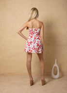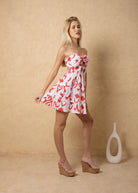 NW1978 - Cherry Cards Print Cotton Strapless Mini Dress