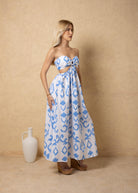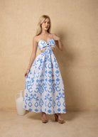 NW2035 - Blue Cards Print Cotton Maxi Dress