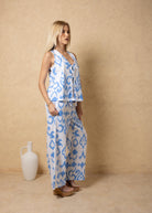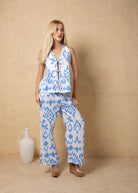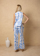 NW2067 - Blue Cards Print Tie-Front Vest Cotton Top