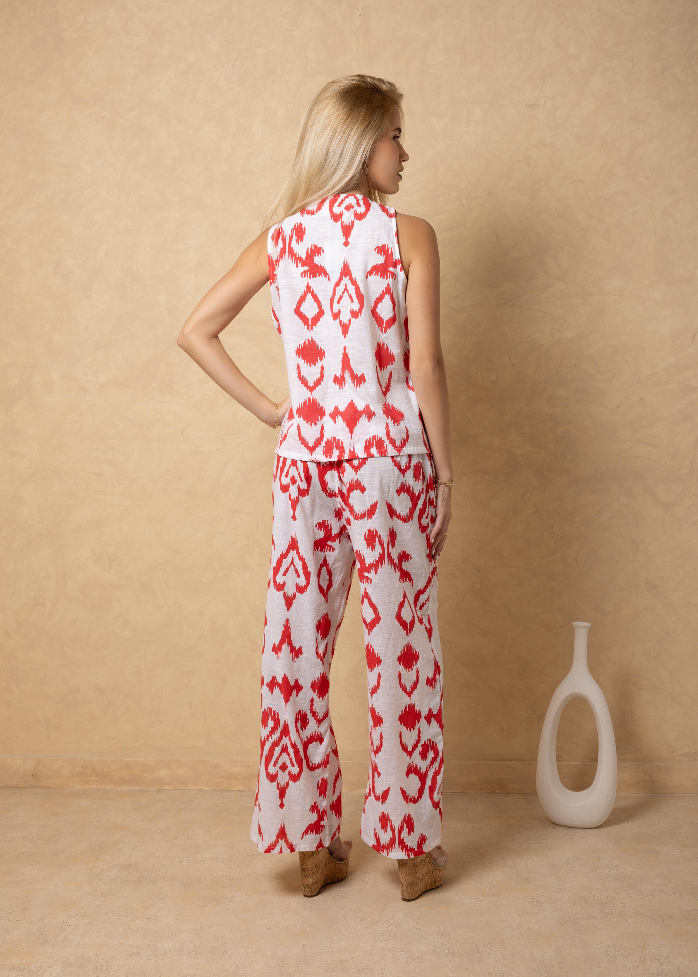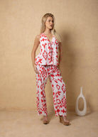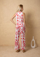 NW2067 - Cherry Cards Print Tie-Front Vest Cotton Top