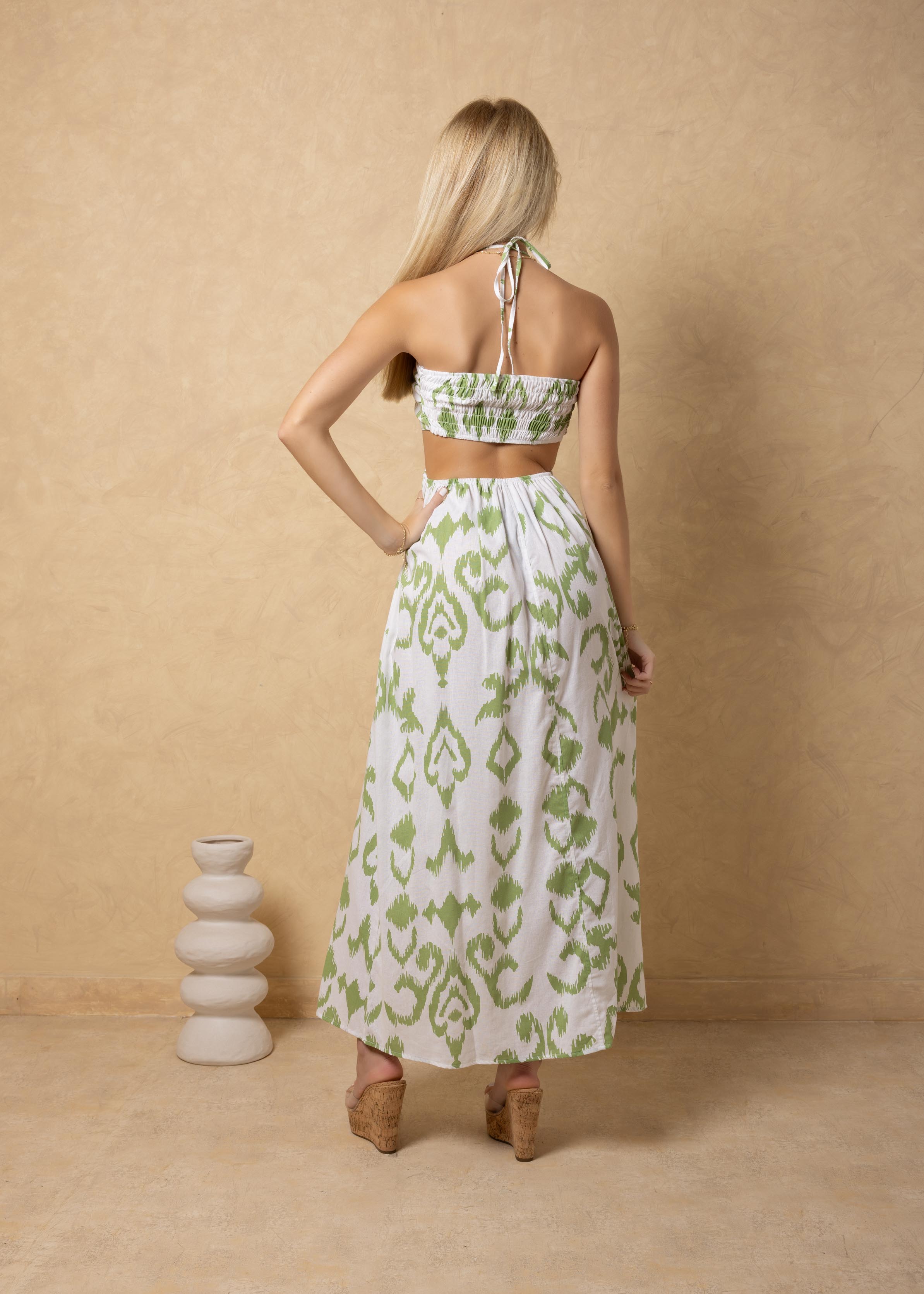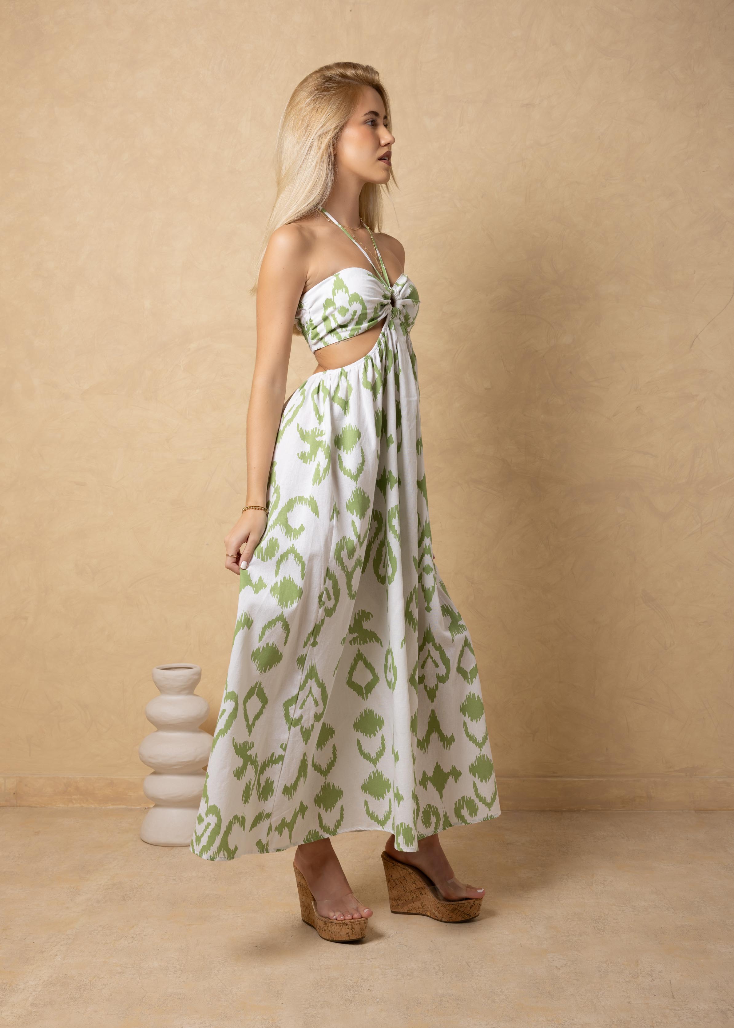 NW2035 - Green Cards Print Cotton Maxi Dress