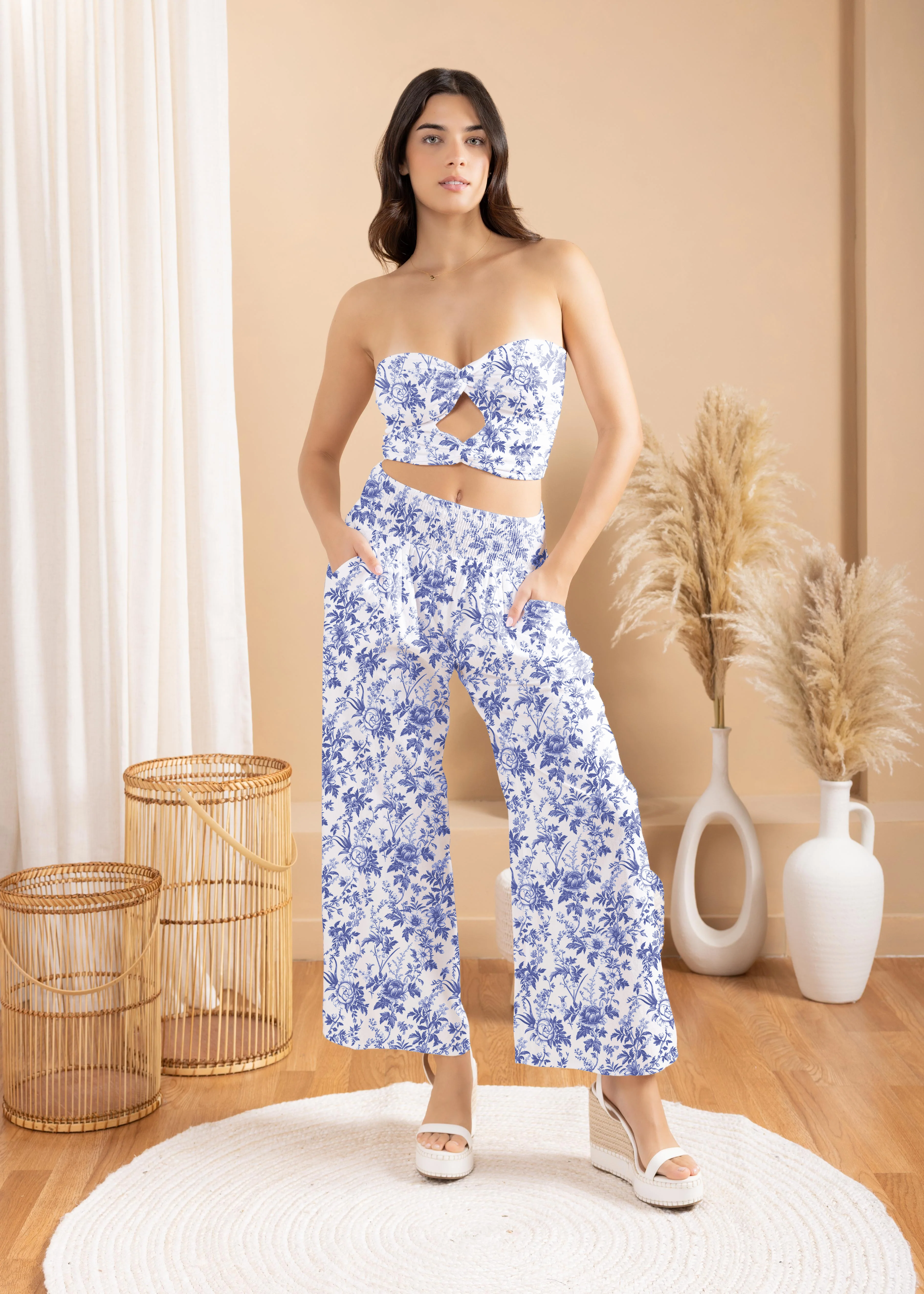 NW1672 - Blue Roses Print Cotton Pants