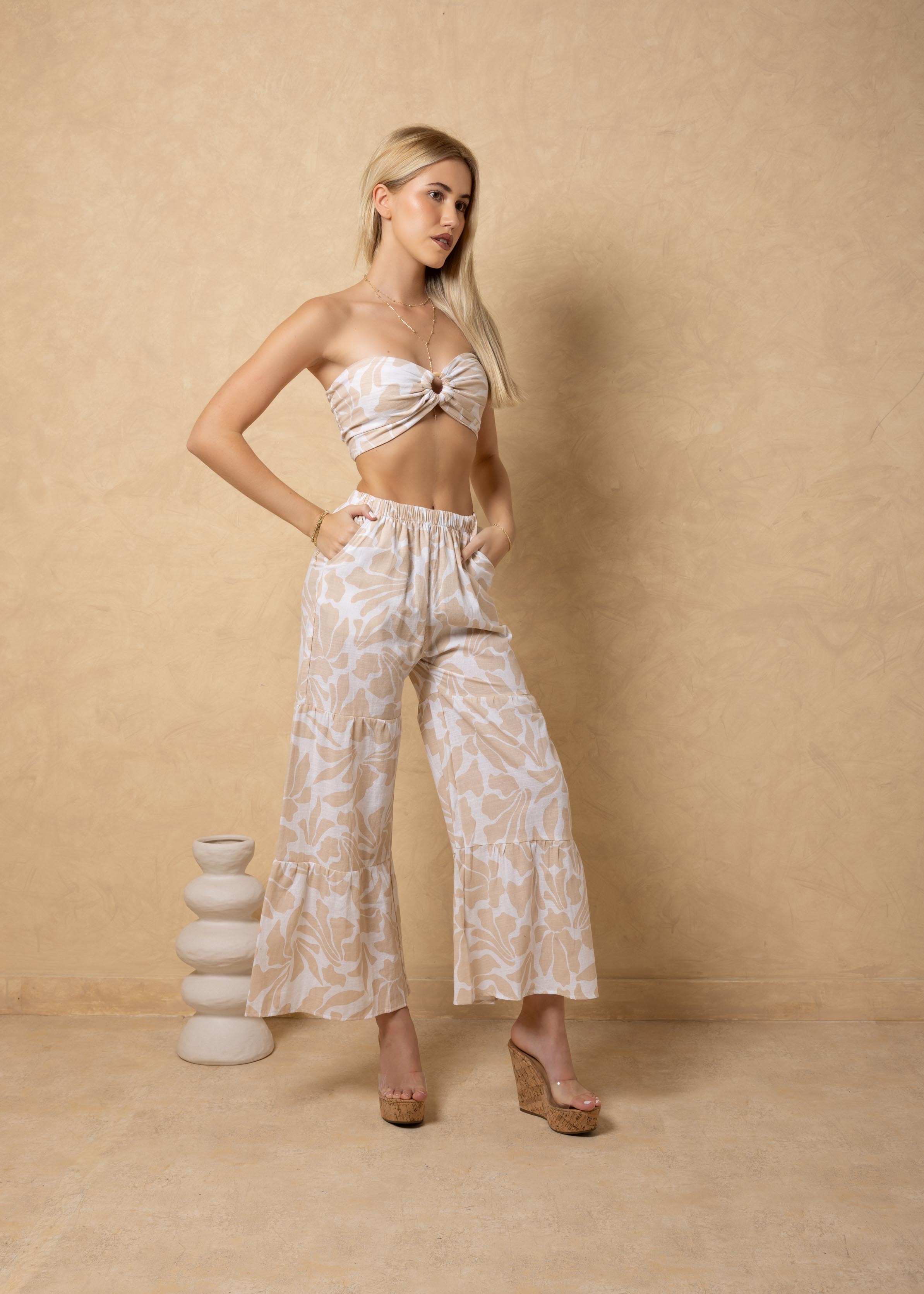 NW1733 - Baby Beige Petals Print Cotton Top