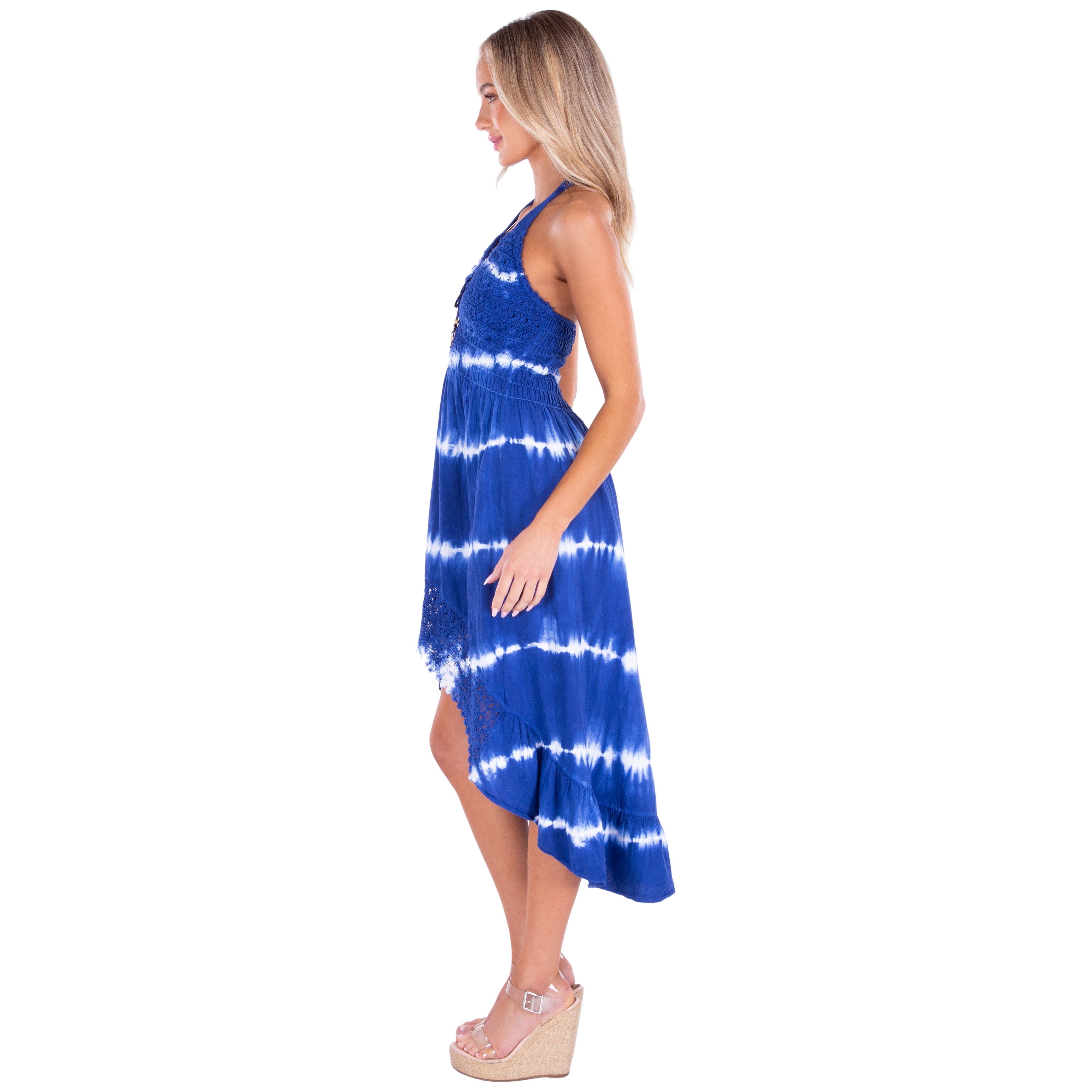 NW1025 - Tie Dye Navy Cotton Cover-Up Dress